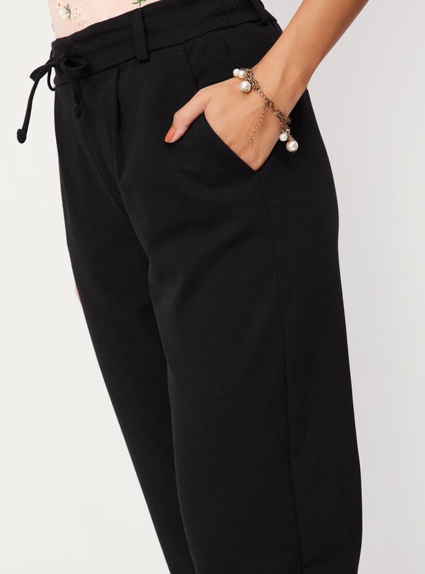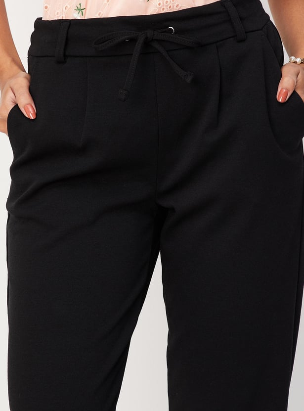 Put together a chic and comfortable workout fit with this pair of pants that are designed with a solid surface, elastic waistline with a drawstring closure, pockets, and cropped-length construction. Team this pair of pants with a crop top and heels for a complete outfit.