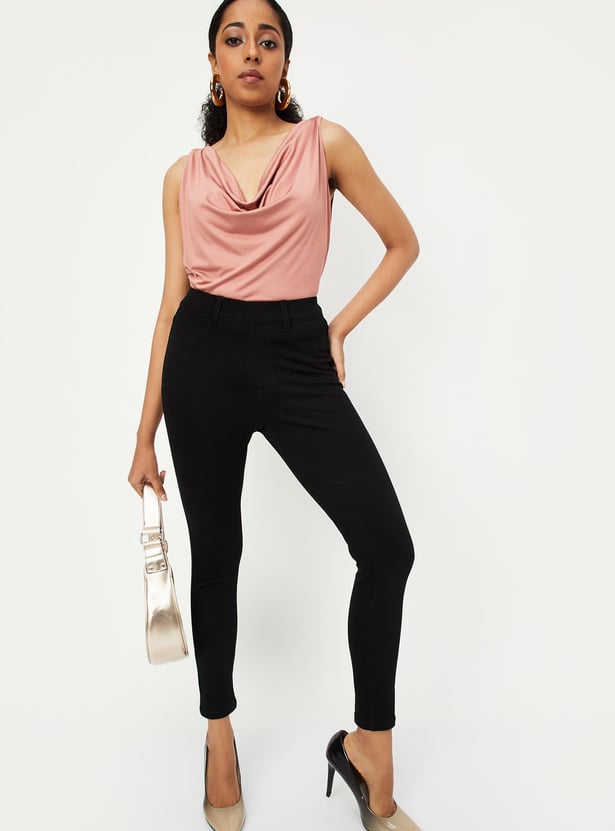 Rock your world with the art of casual yet fashionable style with these treggings. Featuring solid surface, belt loops, and elasticated waistband closure elevating your everyday look with a touch of casual flair.