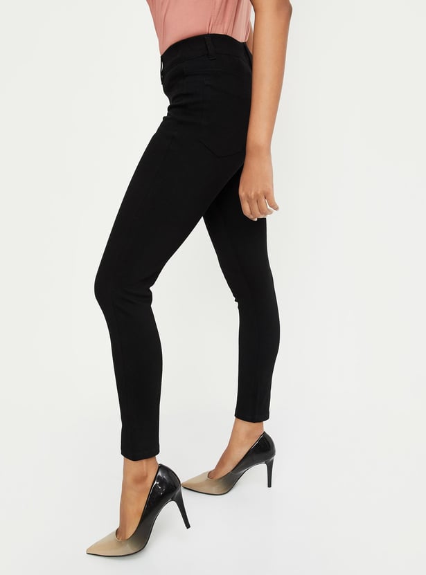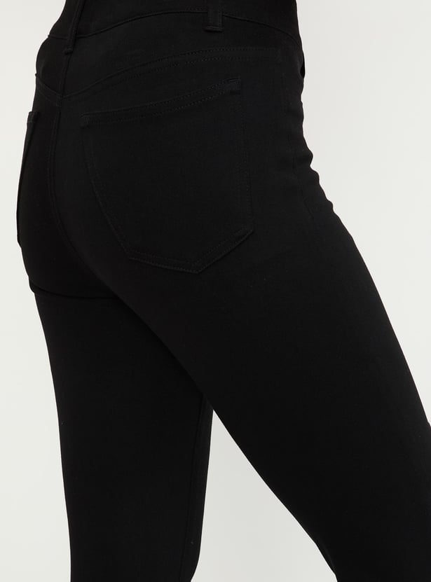 Women Solid Knitted Elasticated Treggings