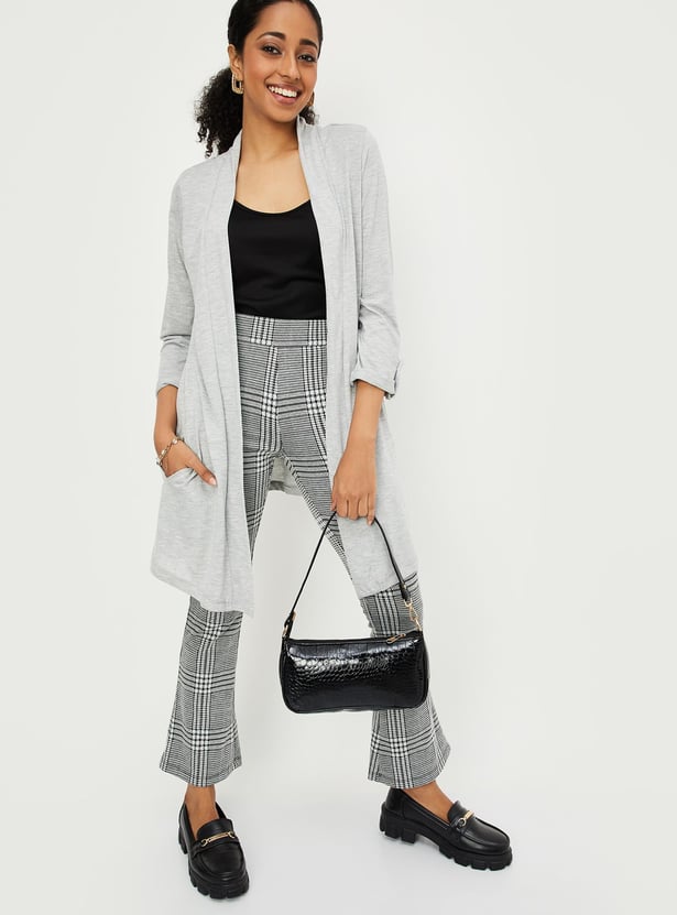 Elevate your style with this chic shrug. The front-open design, full sleeves, and handy pockets strike the perfect balance of comfort and sophistication.