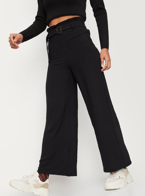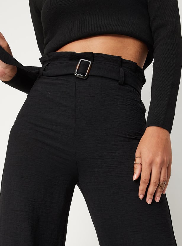 Women Solid Paper-Bag Wide-Legged Trousers