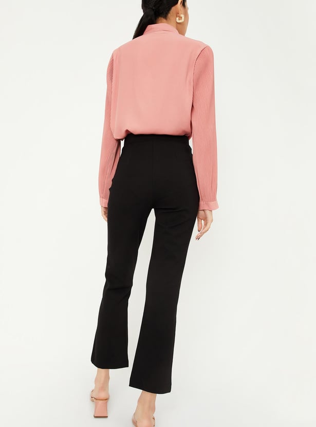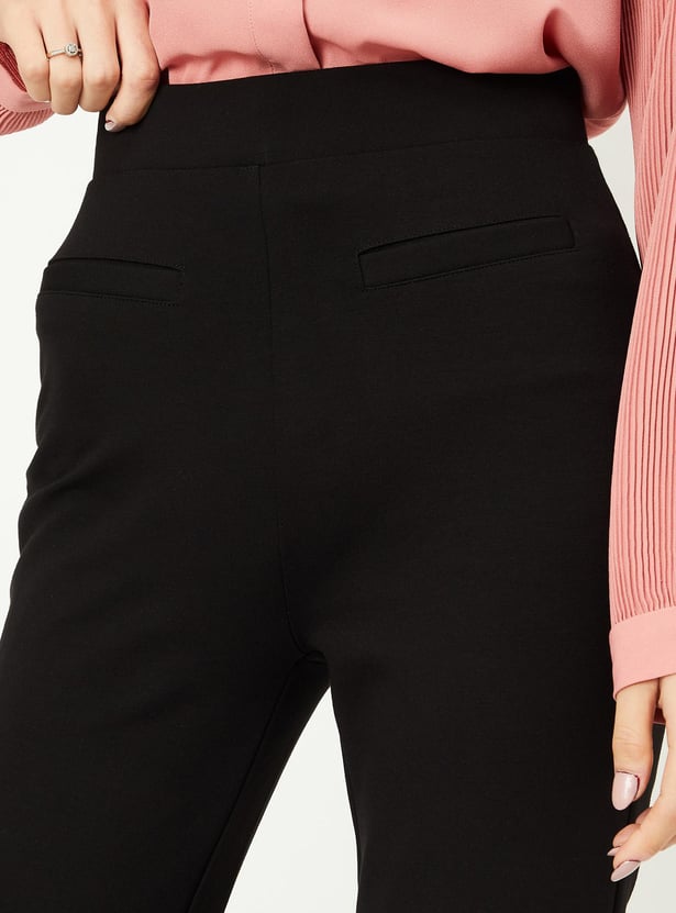 Upgrade your everyday style effortlessly with these timeless treggings. Featuring an elasticated waist and a flared hem, they seamlessly blend comfort and fashion. The solid body and regular fit give them a classic and enduring appeal, making them a must-have for your wardrobe.