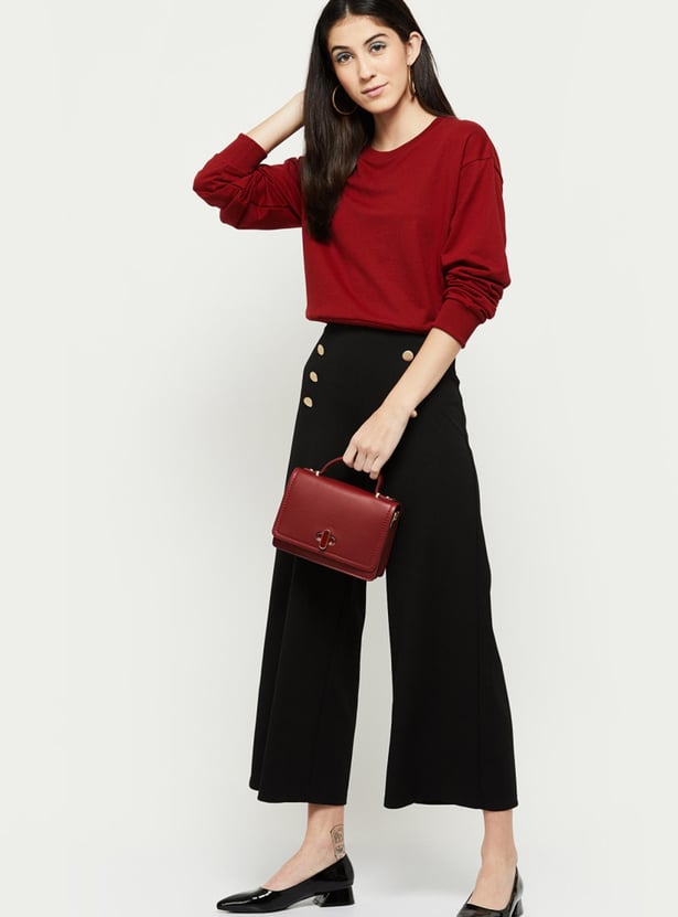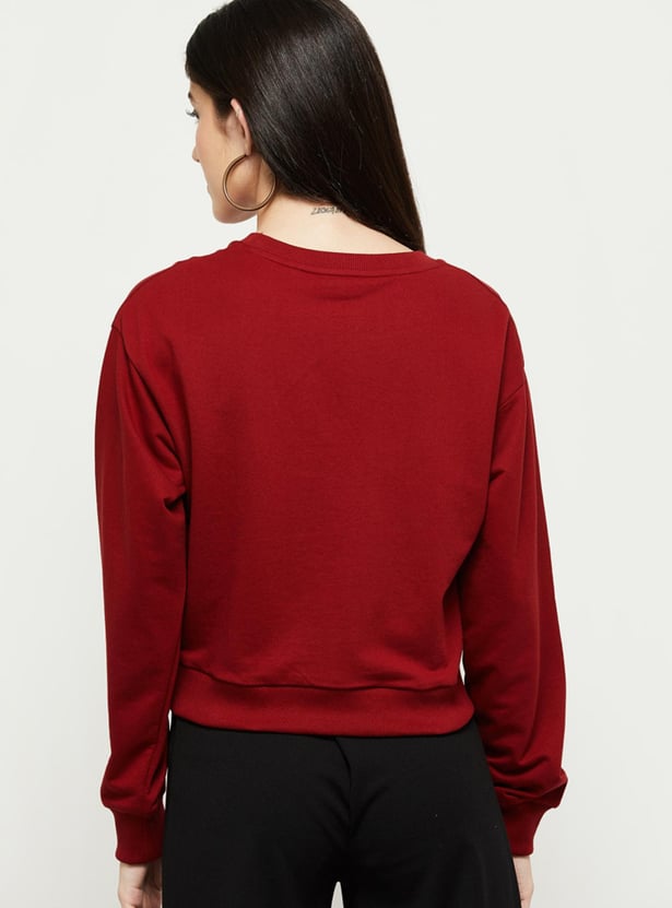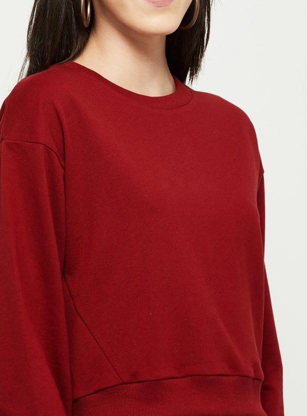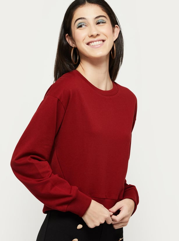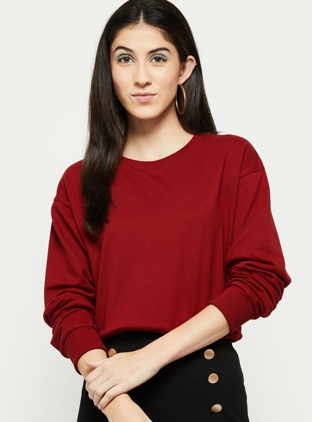 Women Solid Round Neck Full Sleeves Sweatshirt