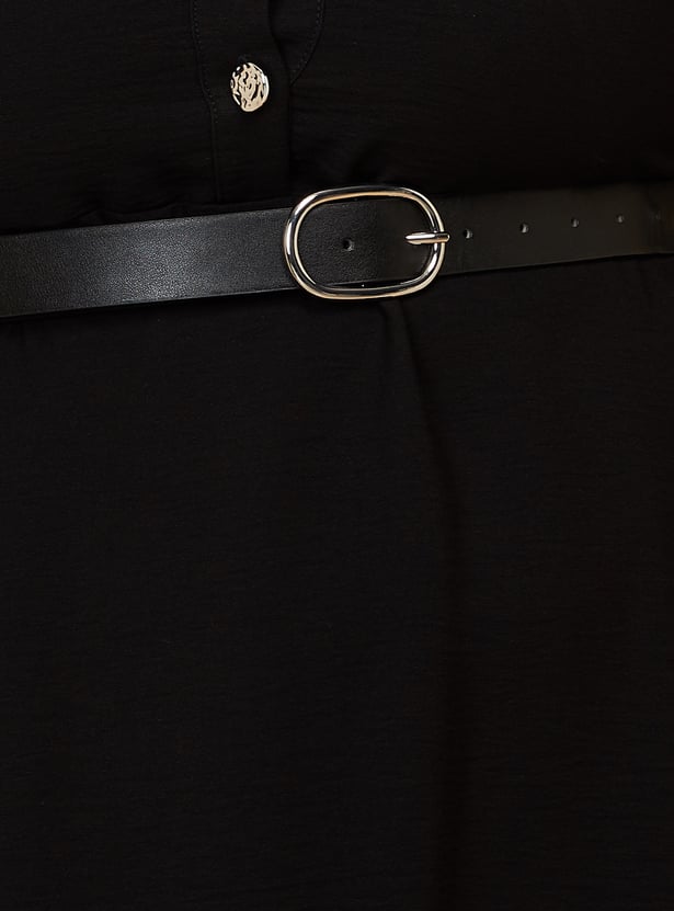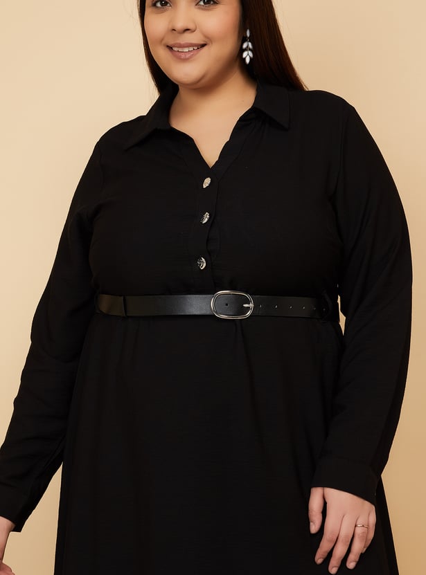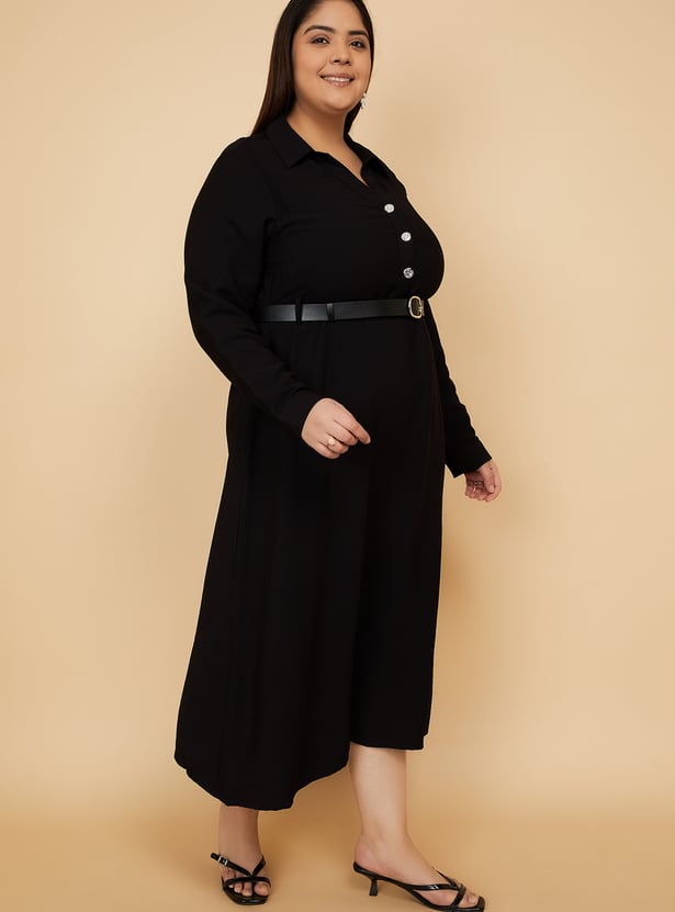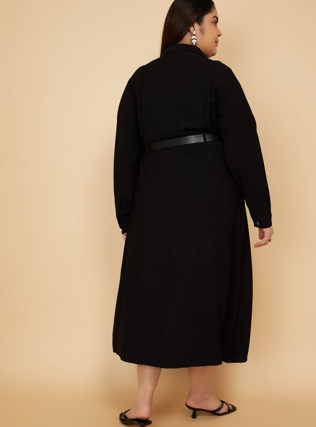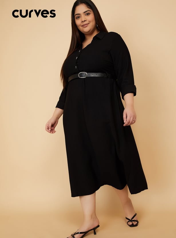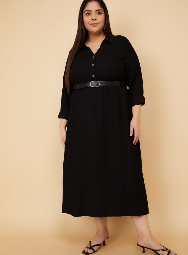 Women Solid Shirt Dress with Belt