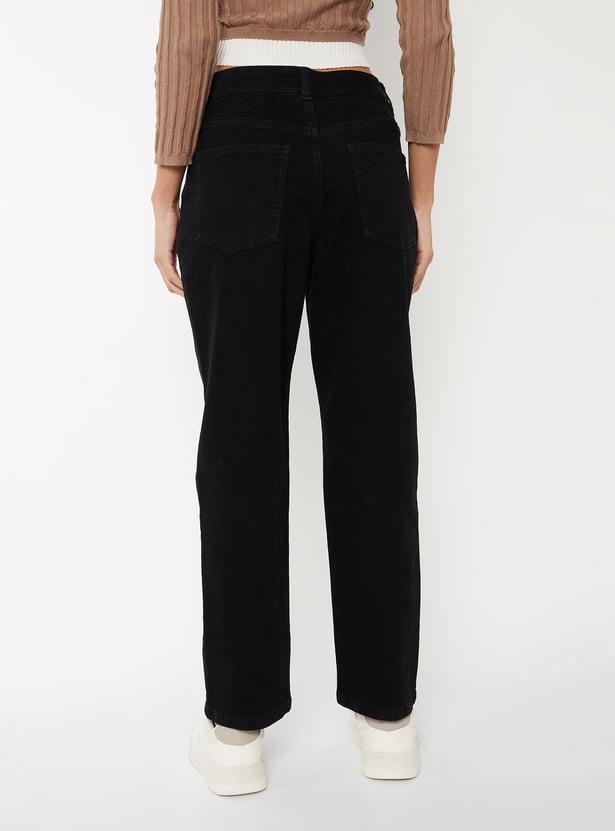 These solid slim straight jeans feature a button closure, belt loops, mid-rise fit, and functional pockets for everyday practicality. A timeless wardrobe essential that offers both comfort and style. Model Size :