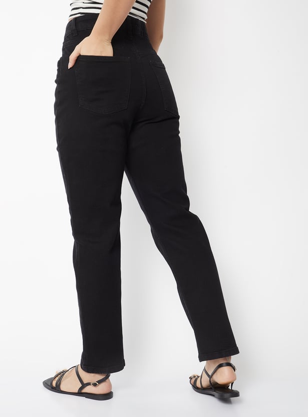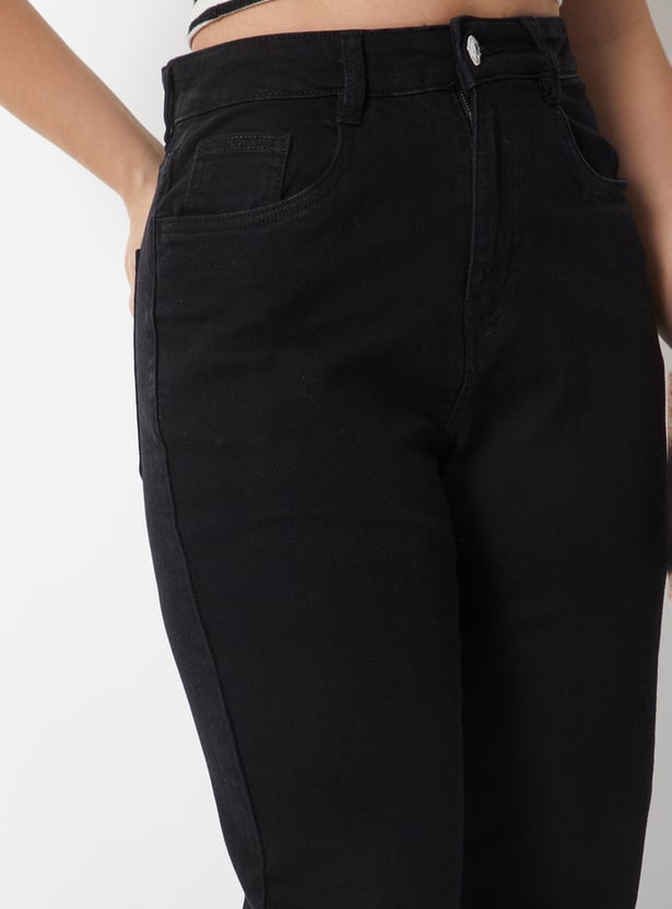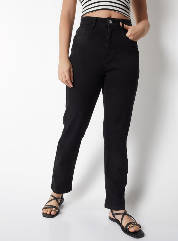 Elevate your everyday style with these solid slim straight jeans—a timeless staple designed for both comfort and versatility. Featuring a classic button closure, belt loops, and functional pockets.