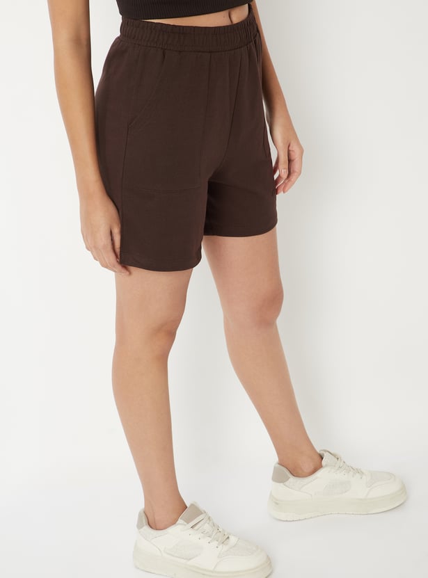 Stay active in style with these solid sports shorts, built for comfort and utility. Featuring an elasticated waist for a secure fit and functional pockets to keep essentials close. Model Size :