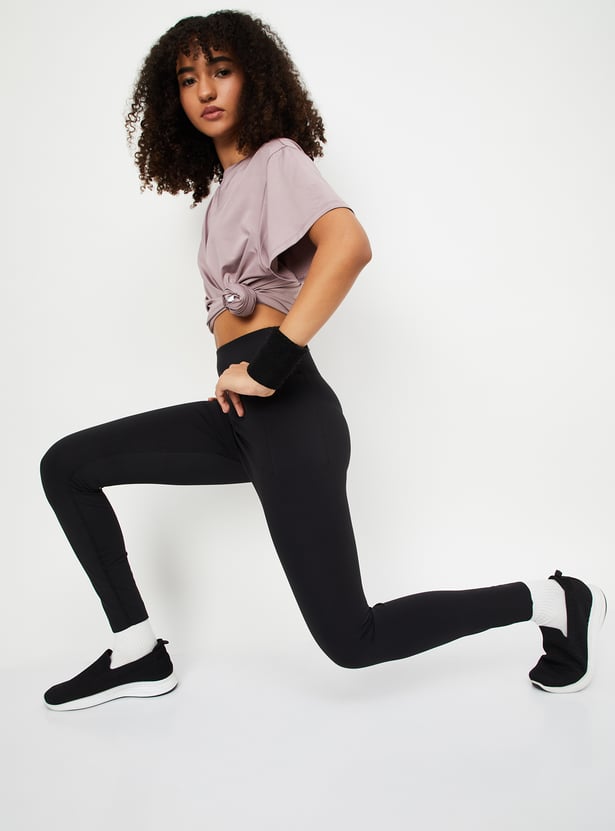 Move with ease and style in these solid high-rise tights, designed with a comfortable elasticated waist for a snug, flexible fit.