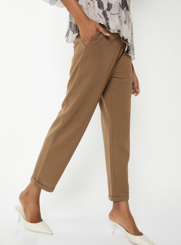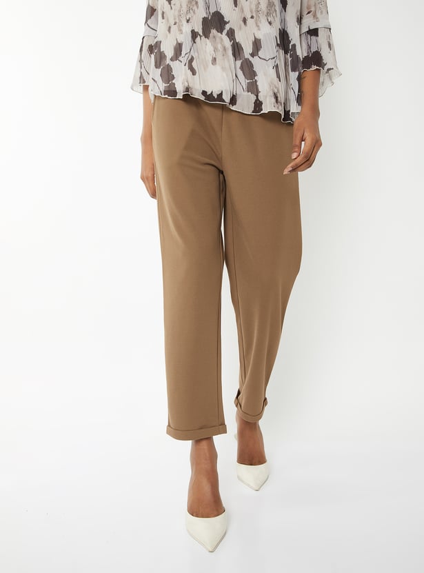 Women Solid Straight Fit Trousers