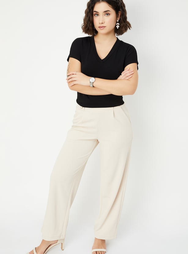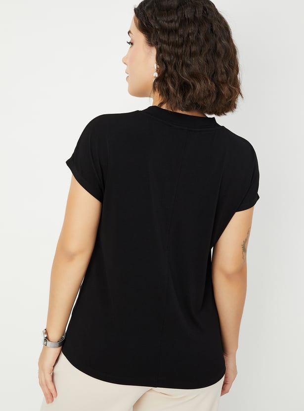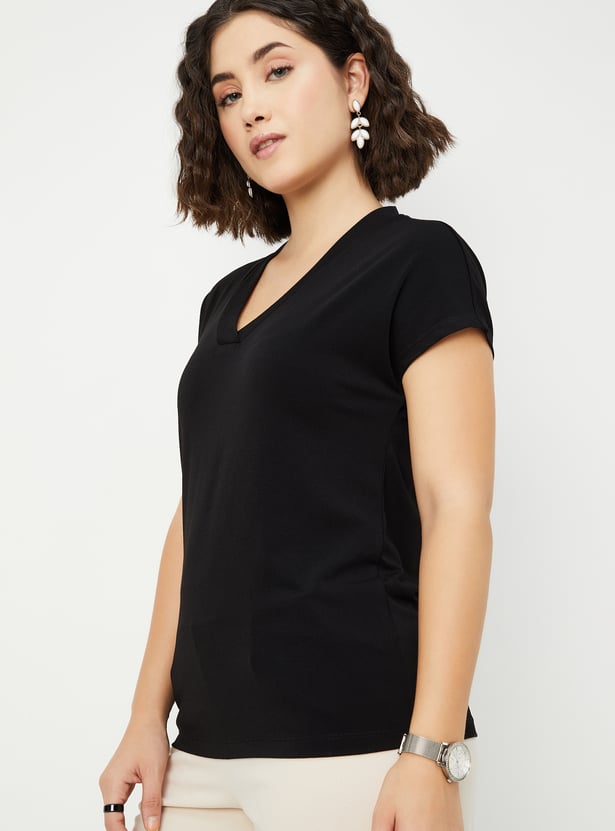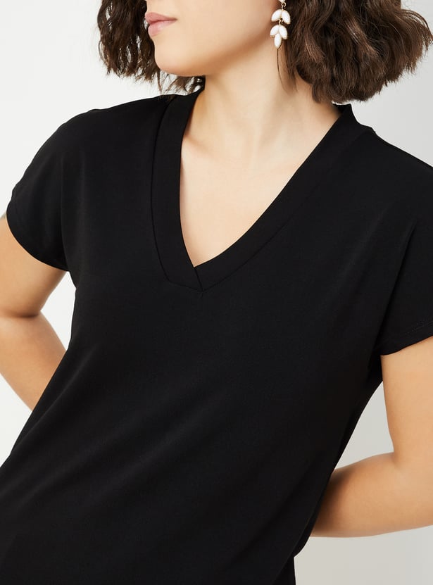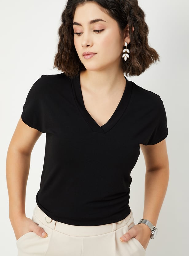 Keep it simple and stylish with this solid V-neck t-shirt. Featuring half sleeves and a classic fit, this wardrobe essential offers both comfort and versatility. Model Size :
