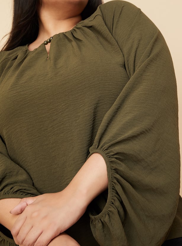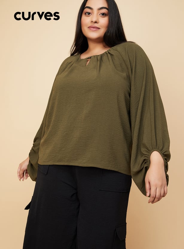 Elevate your casual wardrobe with this chic blouse featuring a keyhole neck and stylish balloon sleeves. The sophisticated design adds a touch of elegance to any outfit, making it perfect for both day and night.