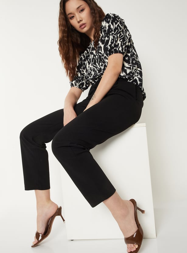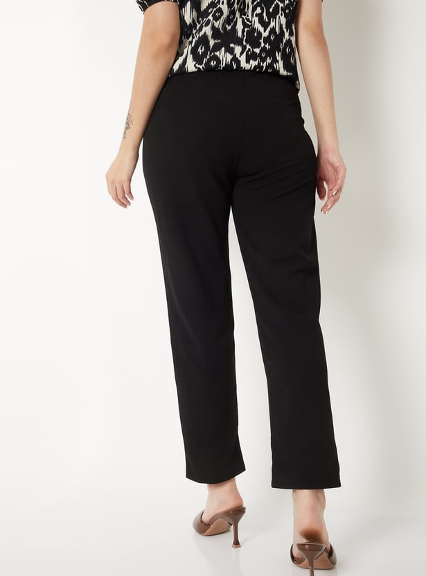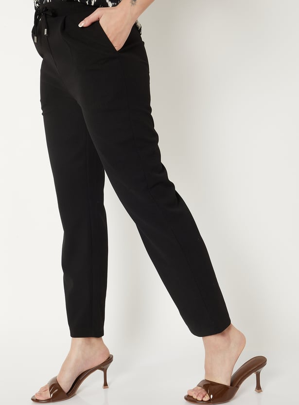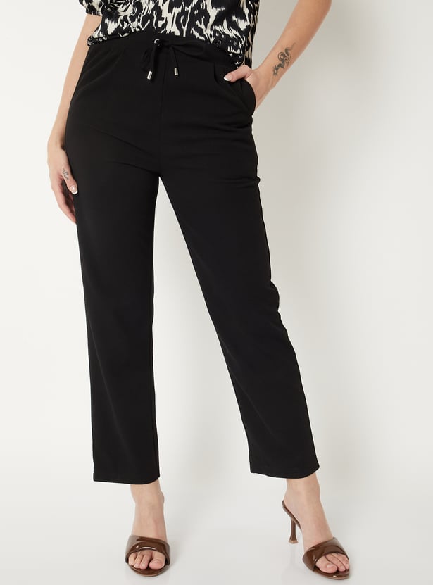 These solid trousers feature an easy ankle-length cut with a comfortable drawstring closure and functional side pockets for everyday practicality. The clean, relaxed silhouette makes them a versatile staple for both casual and polished looks. Model Size :