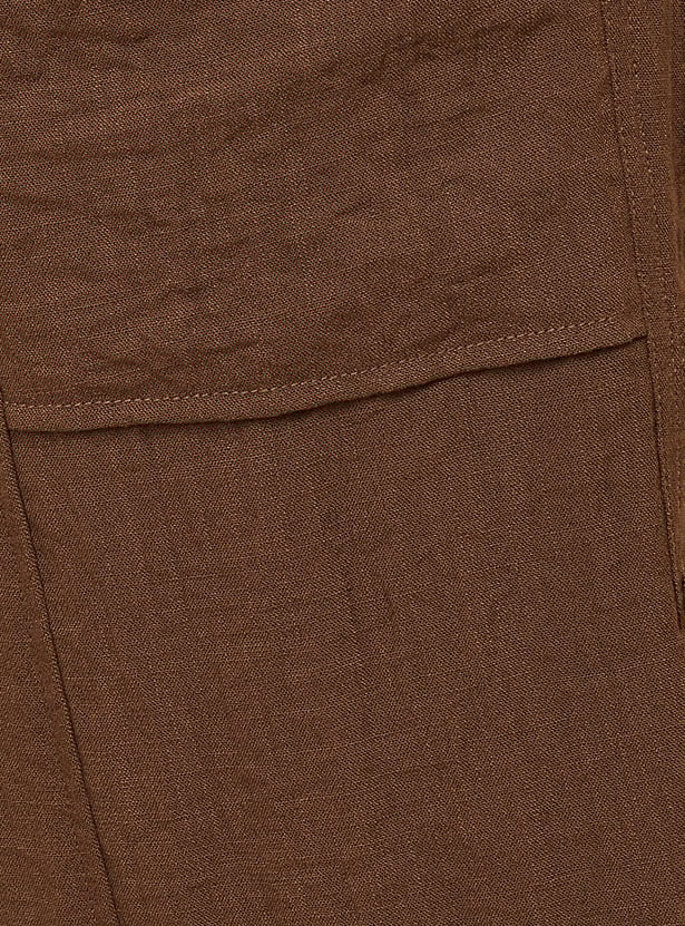 Stay comfortable and stylish with these solid trousers featuring a drawstring closure and functional pockets for everyday ease. Model Size :