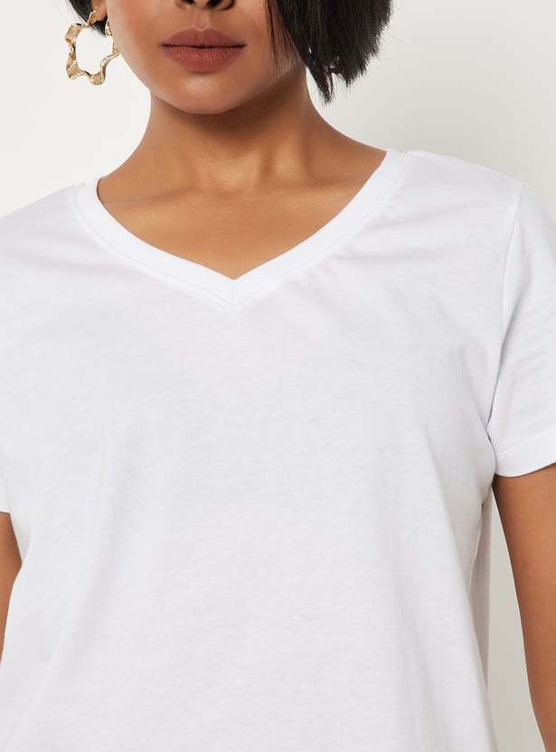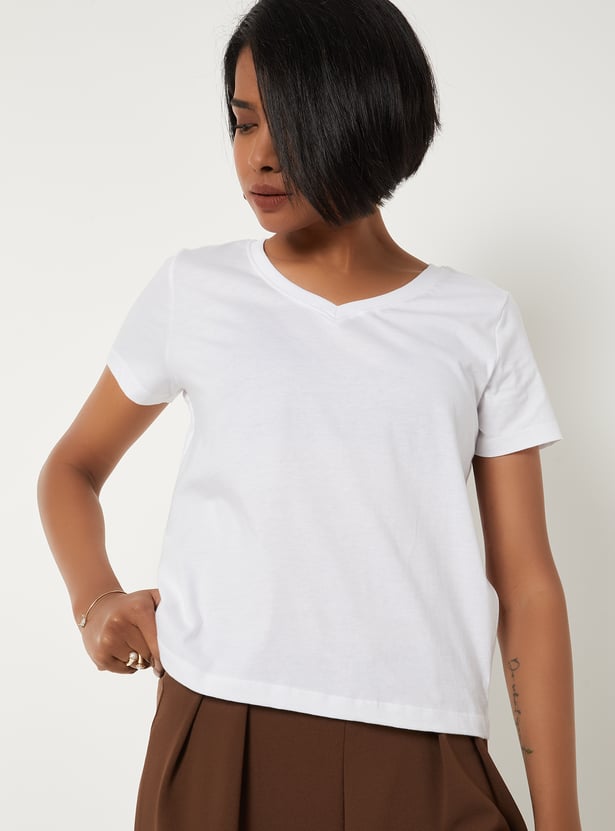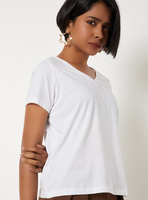 Women Solid V-neck T-shirt