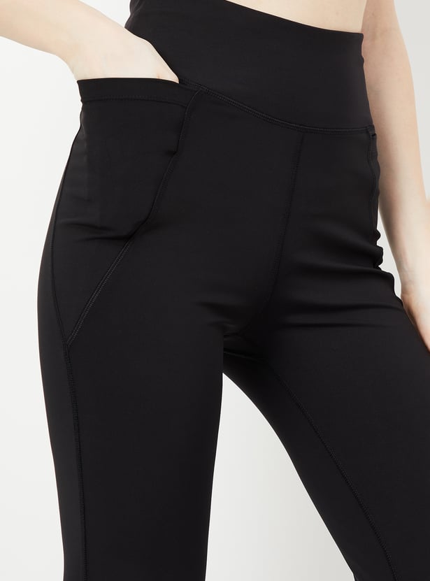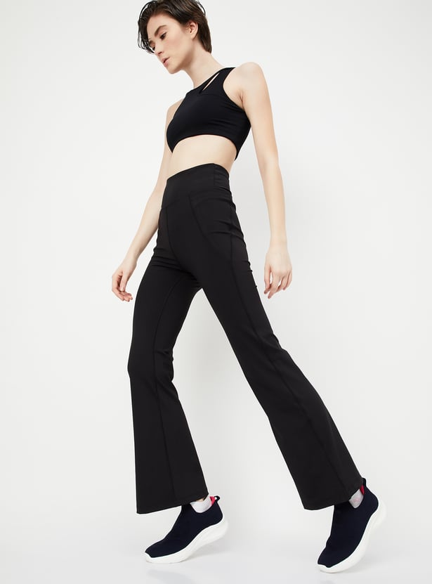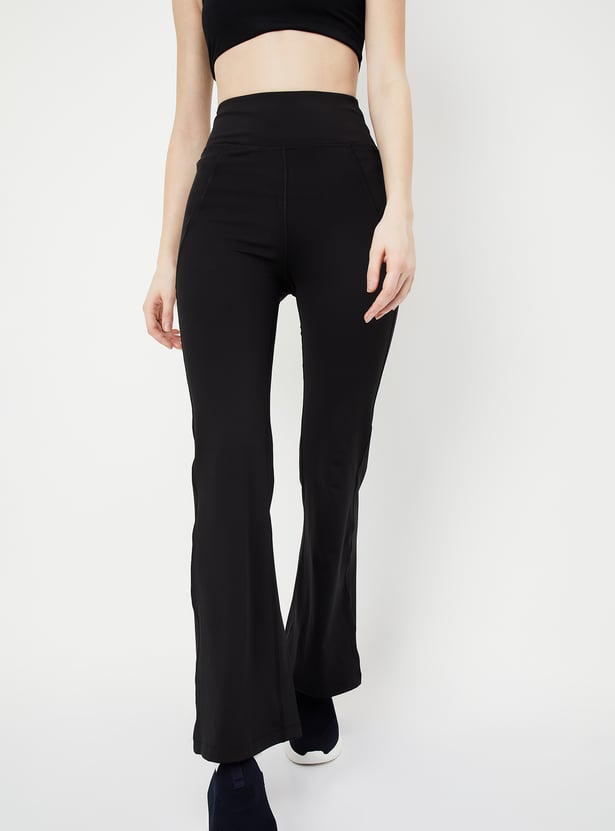 Sweat out in style and comfort with these sporty wide-leg tights, designed in a solid tone. Featuring an elasticated waist, they offer a perfect blend of functionality and sleek design, making them ideal for your active lifestyle.