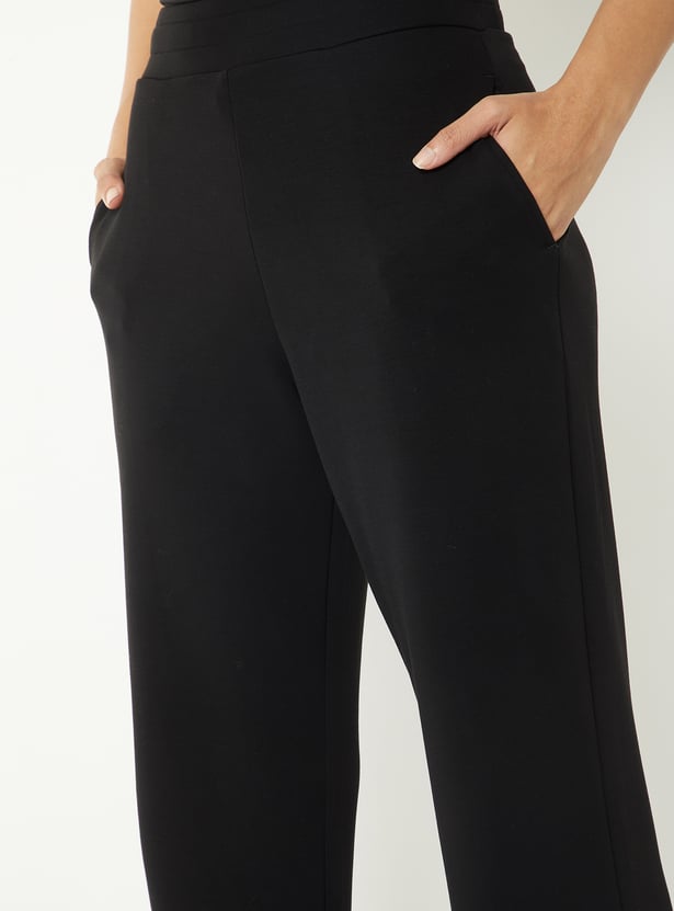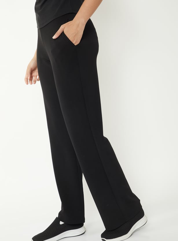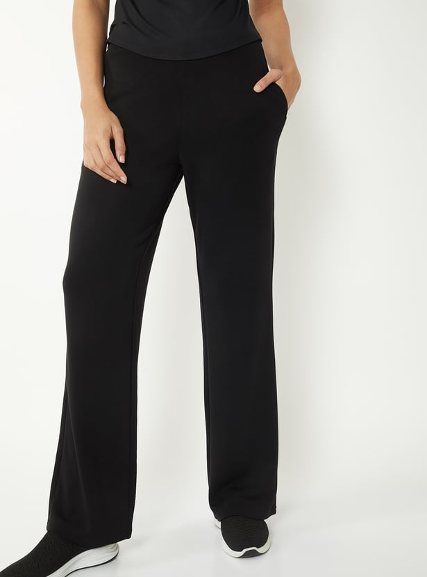 Women Solid Wide Leg Track Pants