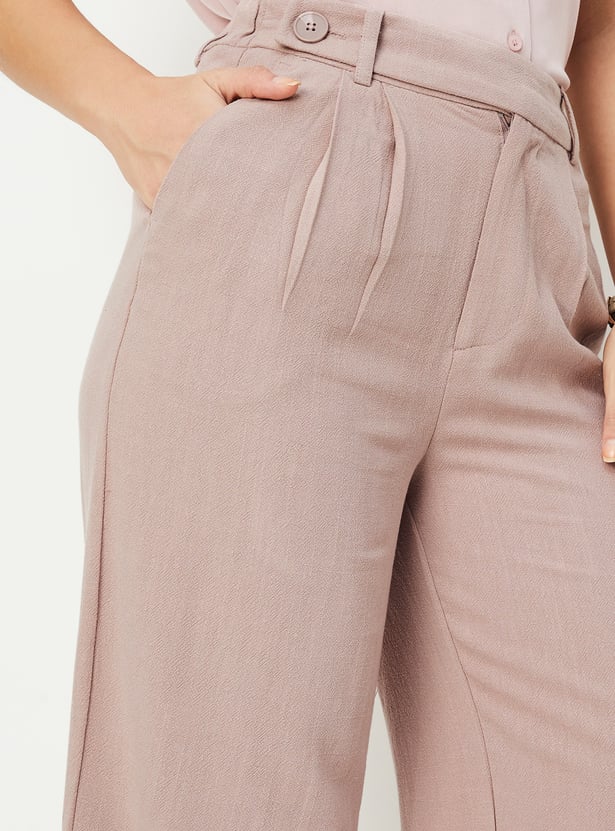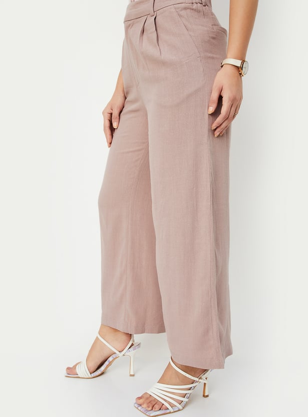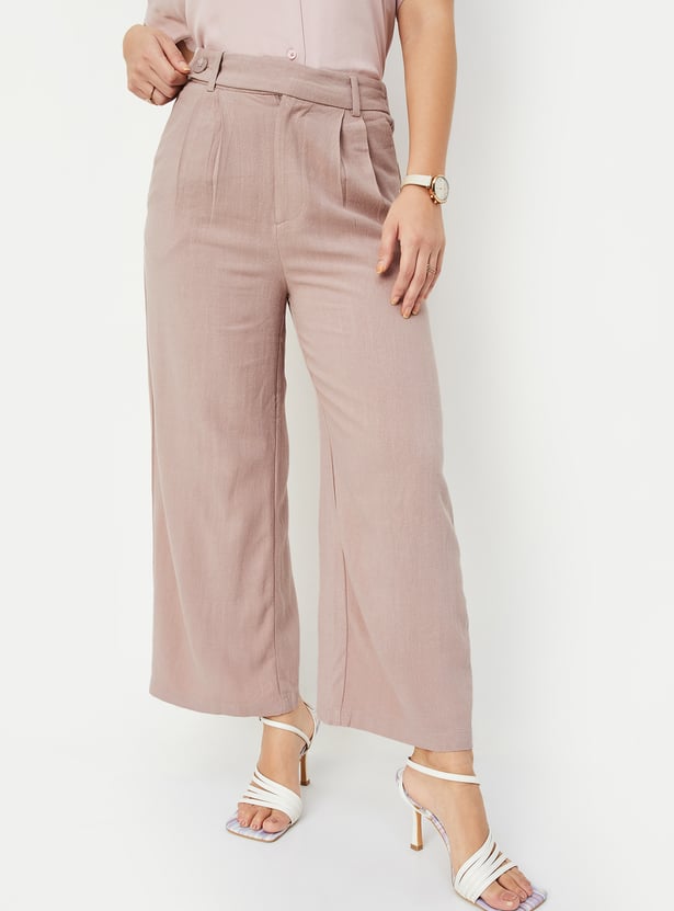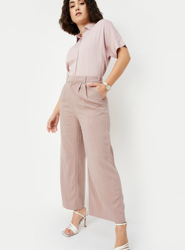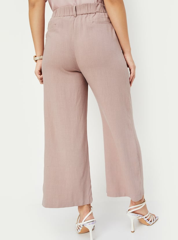 Women Solid Wide Leg Trousers
