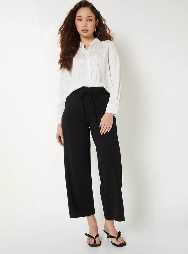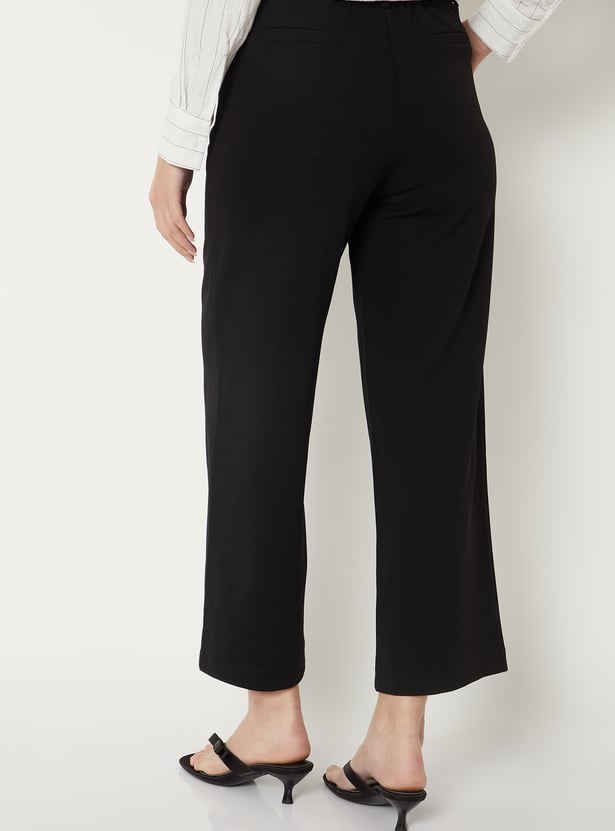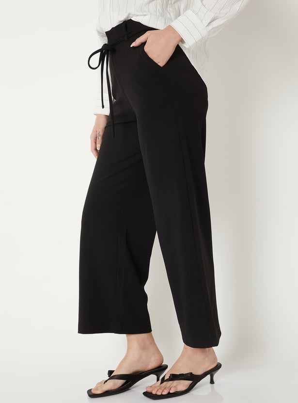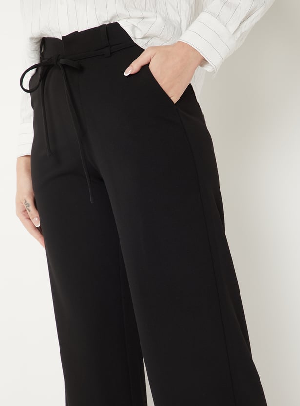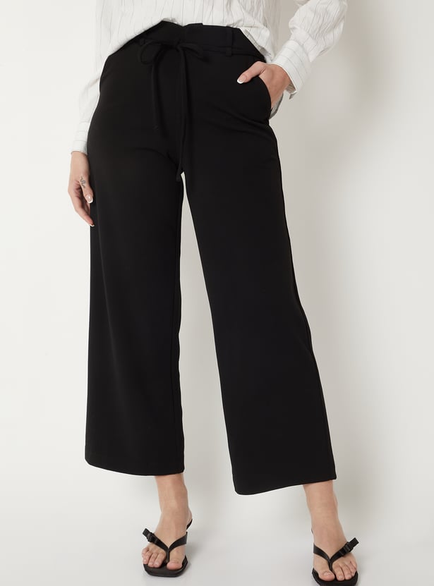Women Solid Wide Leg Trousers