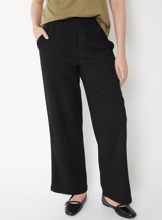 Women Solid Wide Leg Trousers