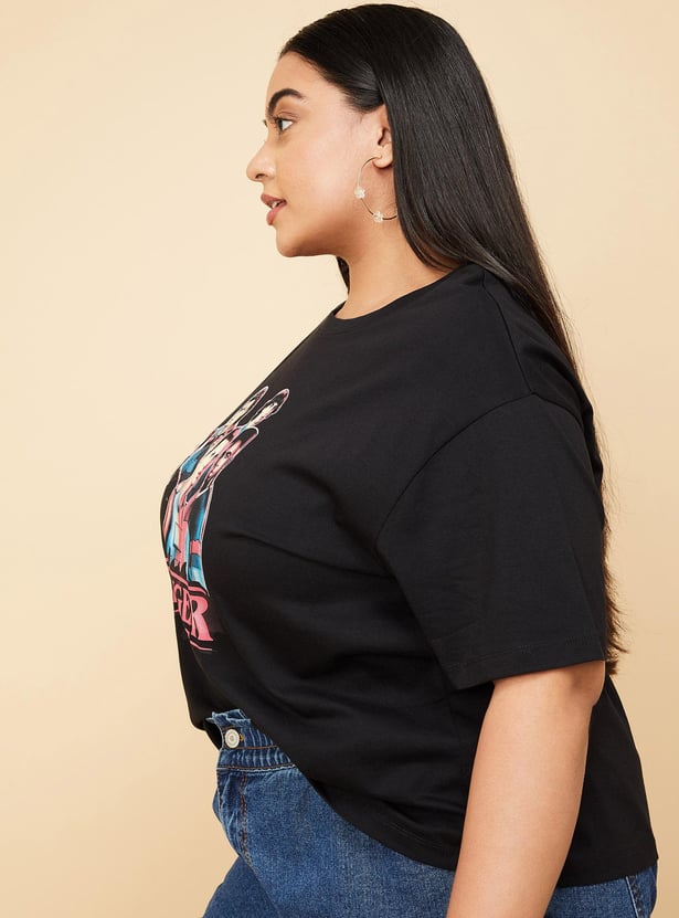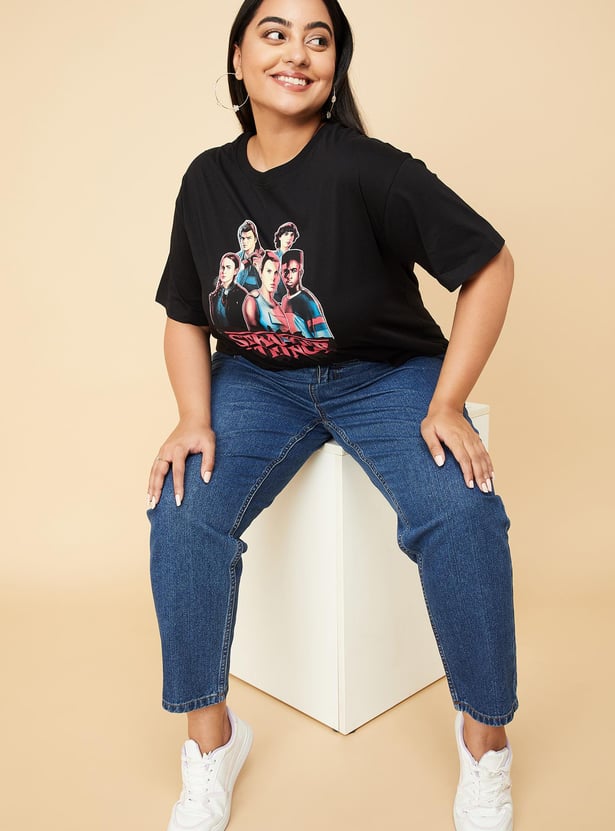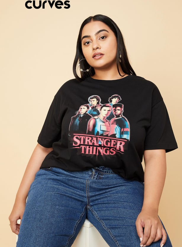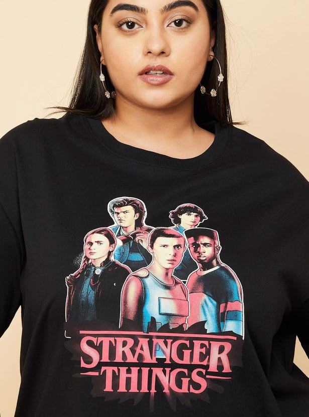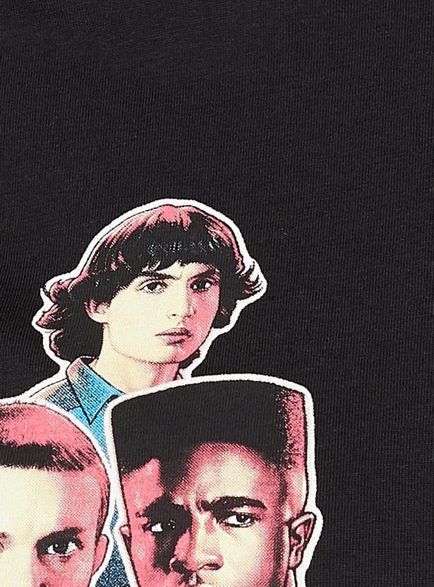 Upgrade your casual ensemble with this T-shirt adorned with a Stranger Things print, complete with a round neckline and half sleeves.