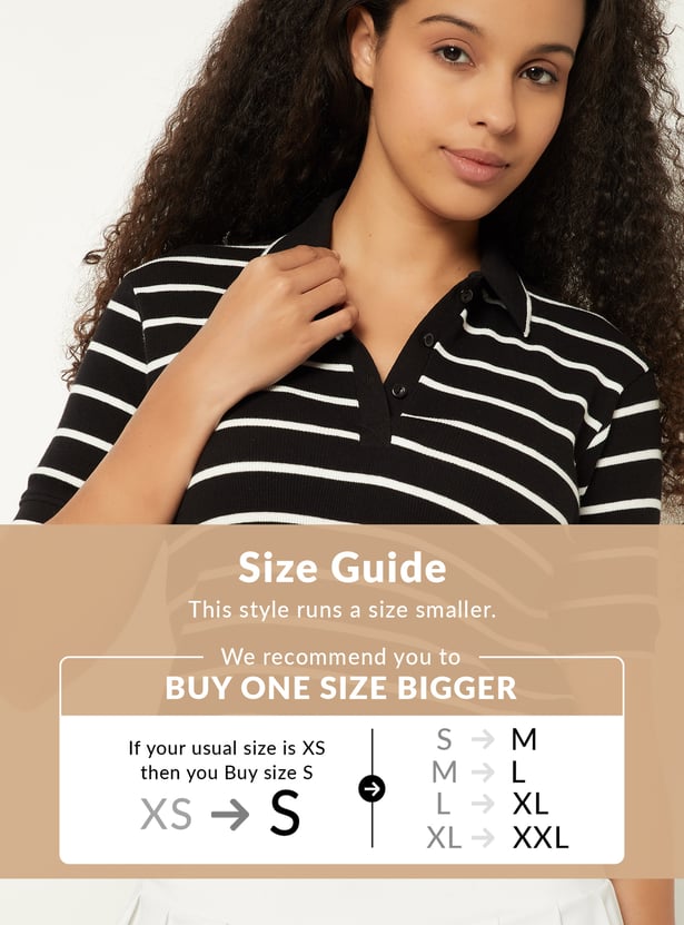 Women Striped Athleisure Polo T-shirt