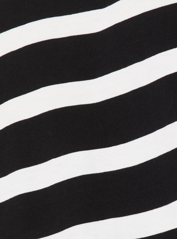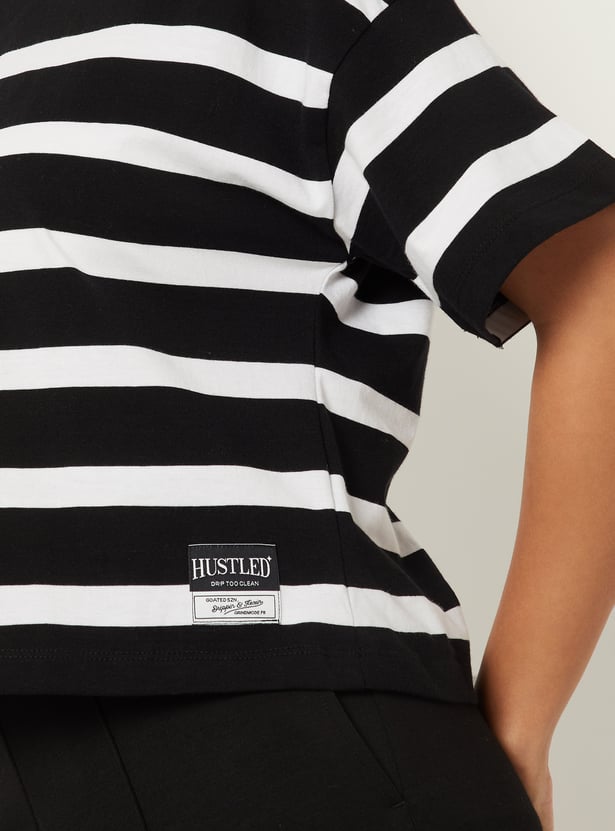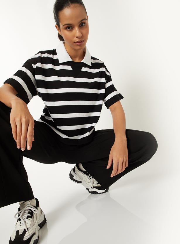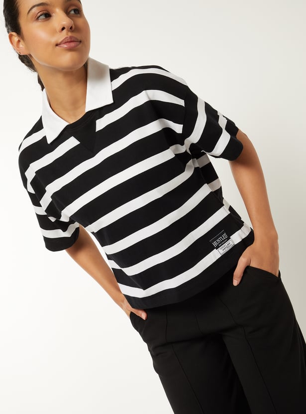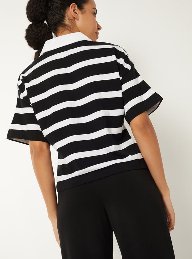 Women Striped Boxy Johnny Collar T-shirt