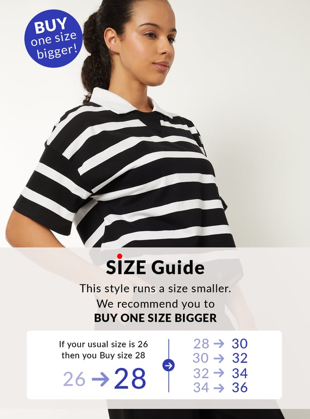 Elevate your casual style with this striped T-shirt, featuring relaxed drop shoulders and a contrasting Johnny collar. The half sleeves and boxy fit create a comfortable, modern silhouette.