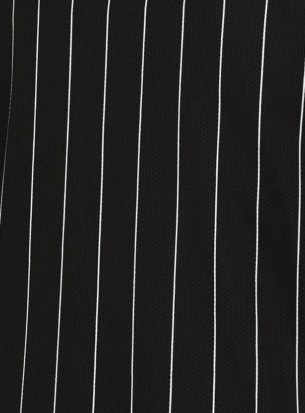 Elevate your casual style with this striped T-shirt, featuring relaxed drop shoulders and a classic round neck. The half sleeves and oversized fit create a comfortable, modern silhouette. Model Size :