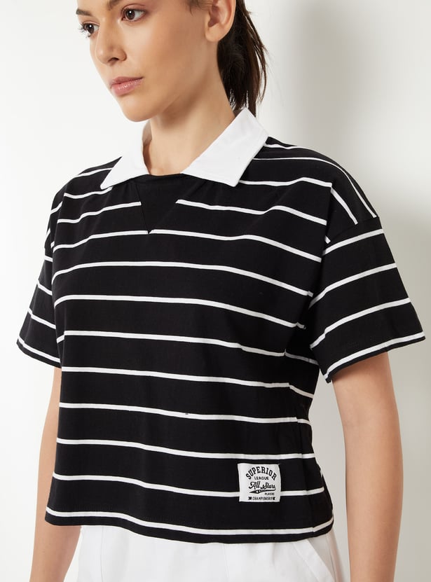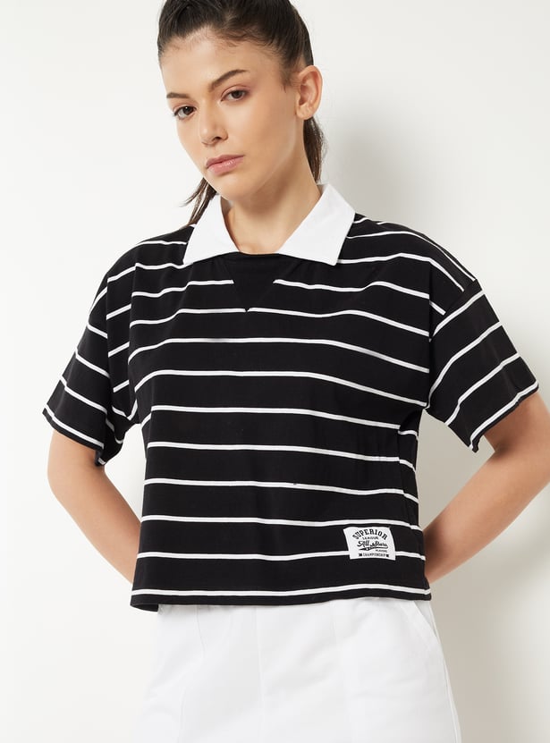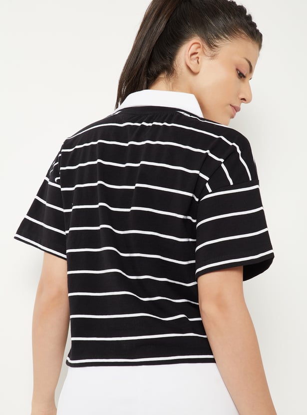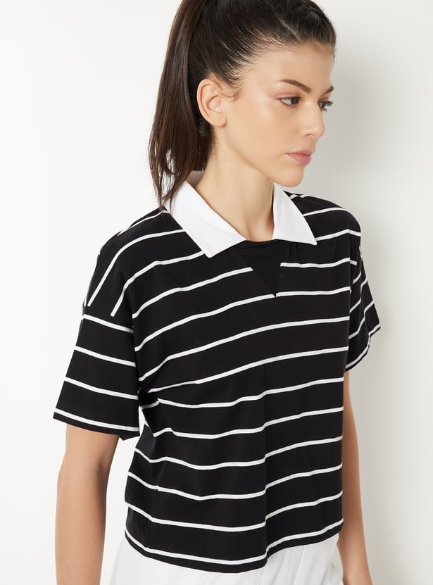 Casual yet polished, this striped polo t-shirt is designed with half sleeves for a relaxed fit. The polo collar adds a smart touch to the classic striped pattern, making it versatile enough for both casual outings and semi-formal settings.