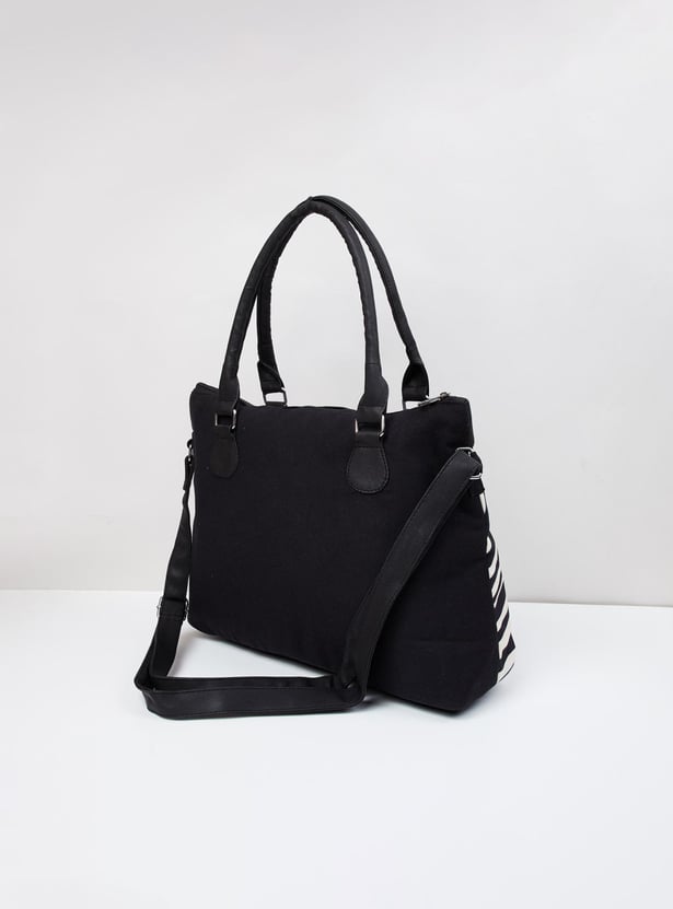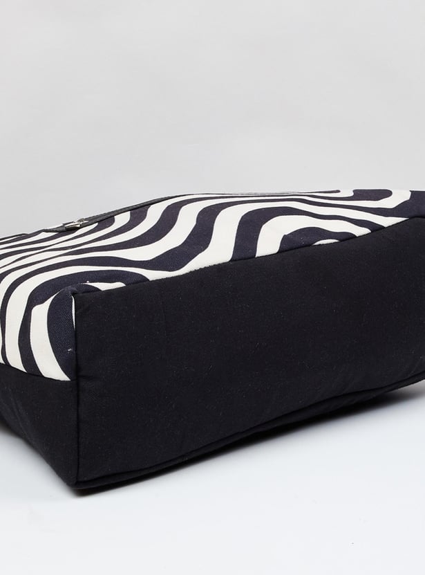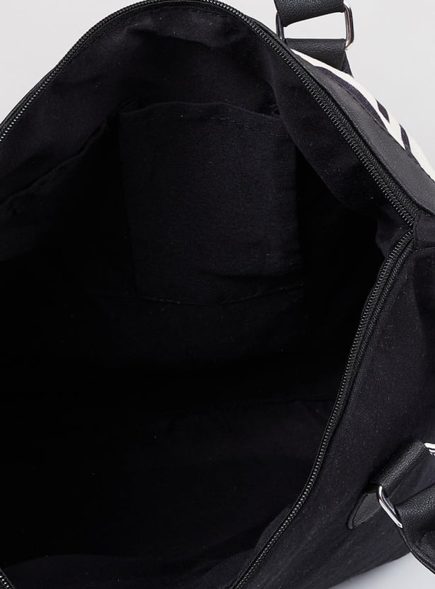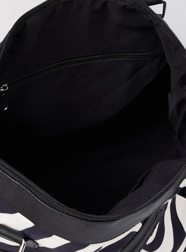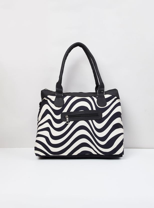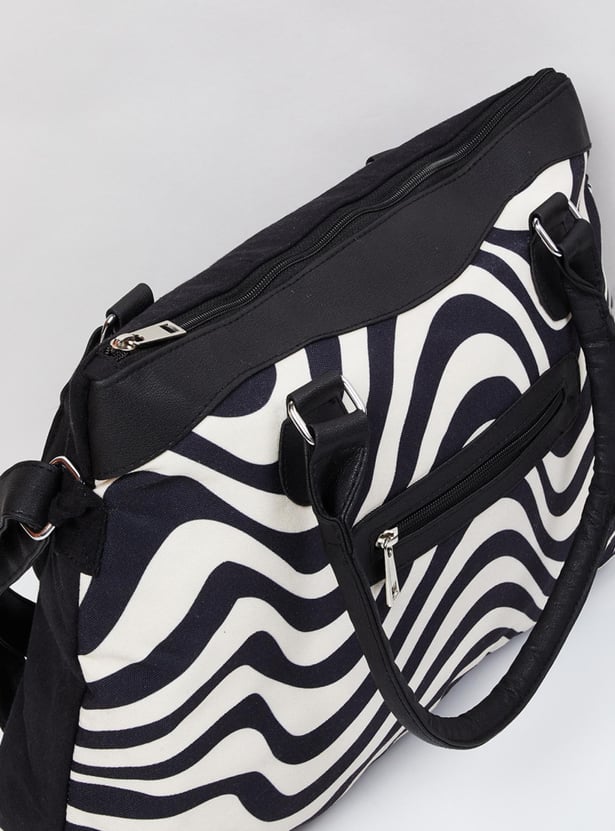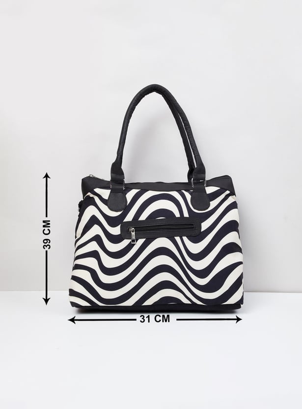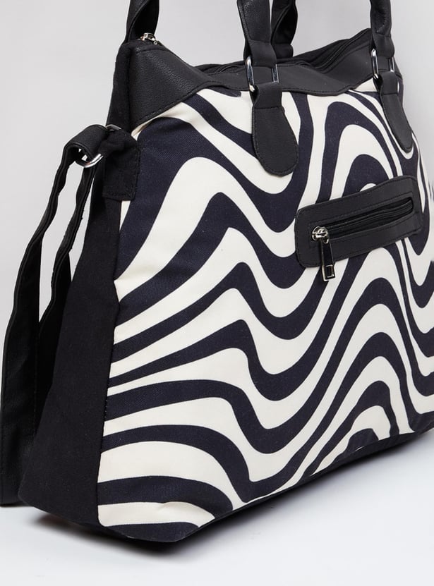 A stylish add-on for your everyday looks, a weekender bag with trendy black and white prints, and a modern look. It is finished finely with zip closure, a pocket, a shoulder strap, and comfortable holding straps.