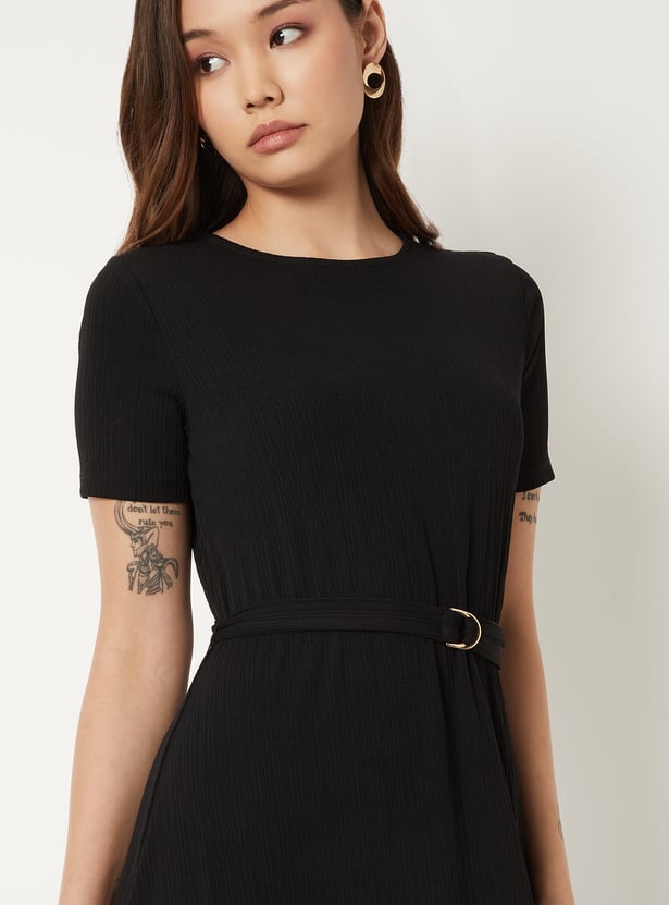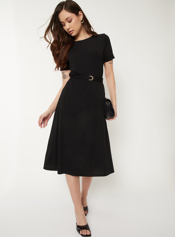 Women Textured A-line Belted Dress