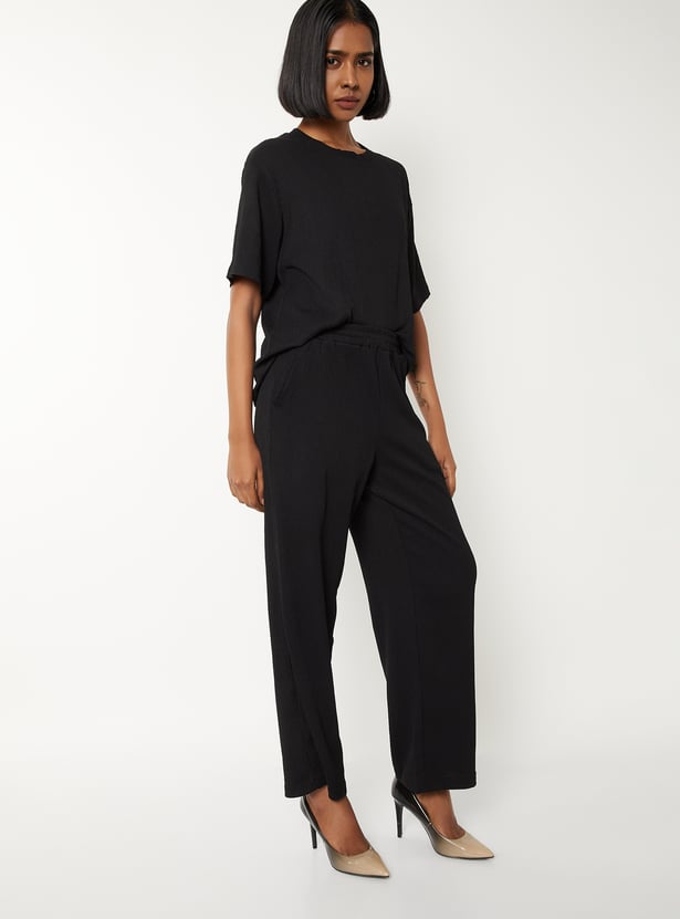Women Textured Comfort Fit Trousers