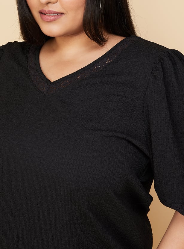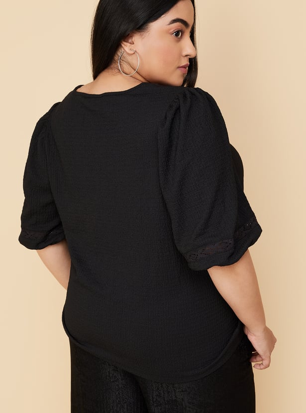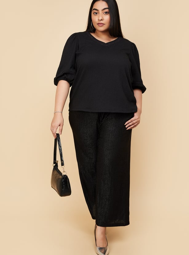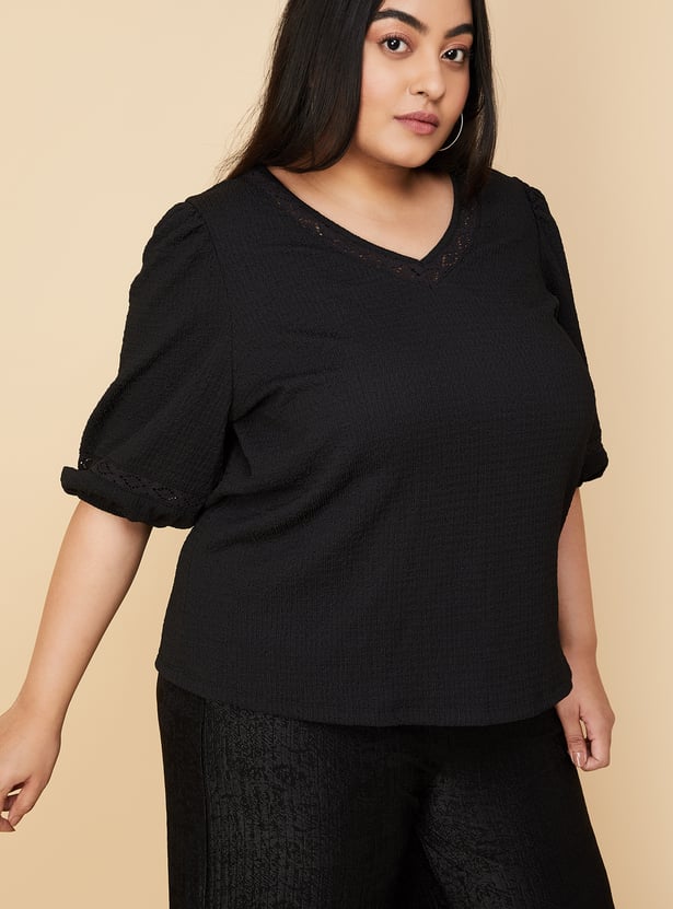 Elevate your casual wardrobe effortlessly with this fashionable knit top. Boasting a V-neck and stylish puffed sleeves, it adds a touch of chic sophistication to any outfit.