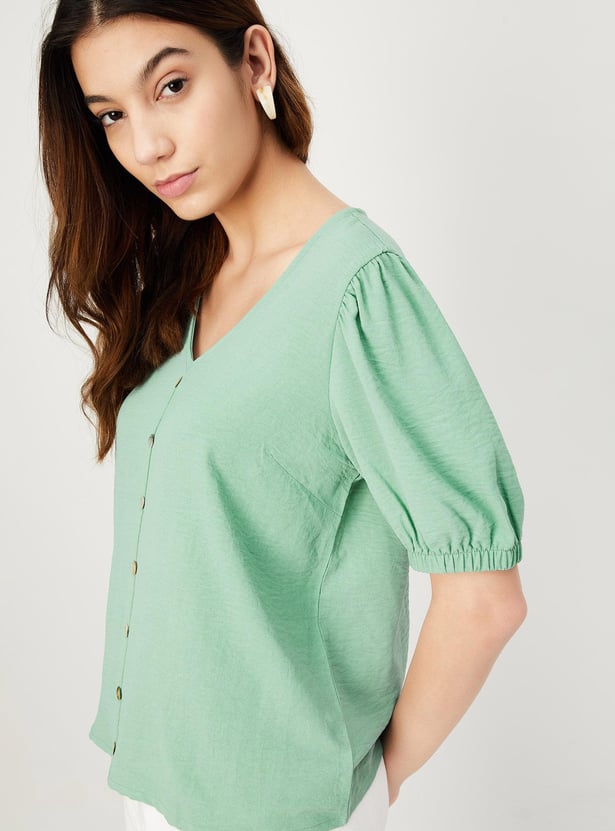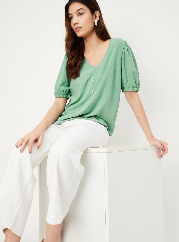 Women Textured Puffed Sleeves Top