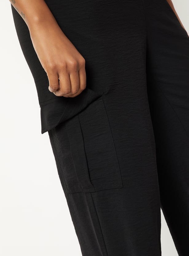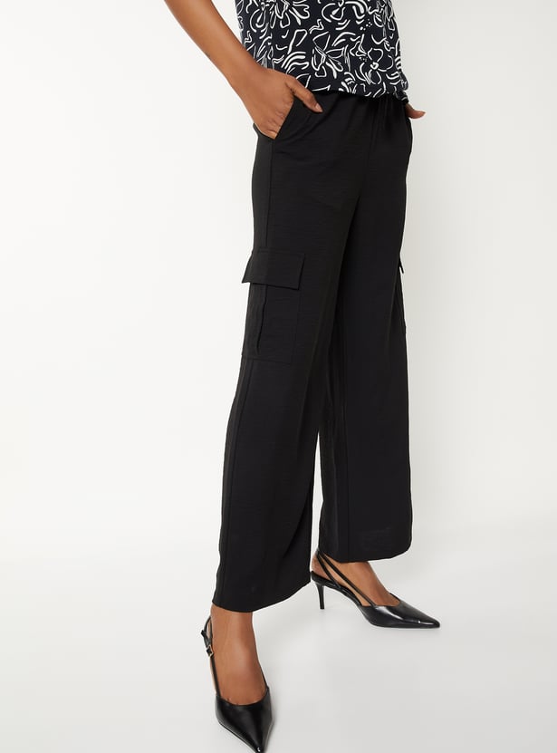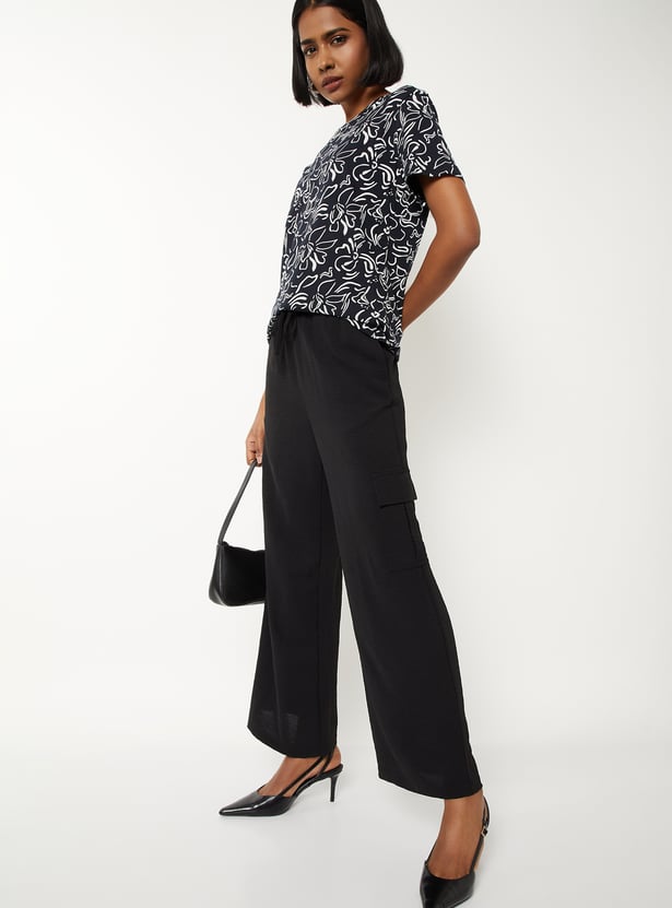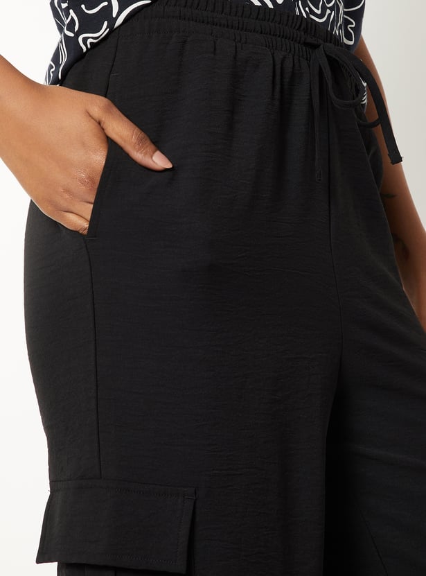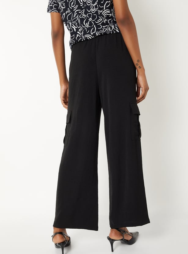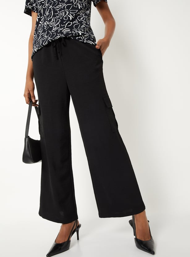 Utility meets comfort in these textured wide leg cargos, designed with a relaxed silhouette, adjustable drawstring waist, and spacious pockets. Model Size :