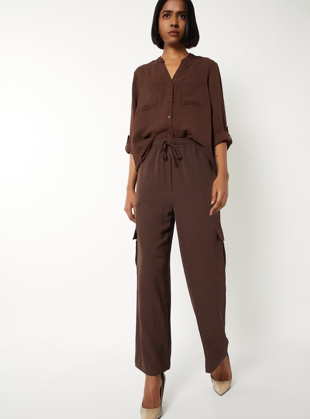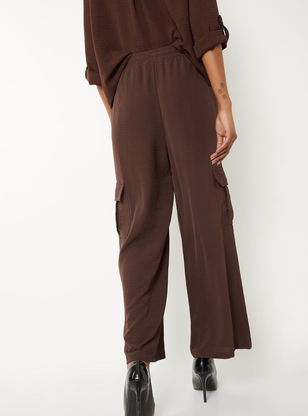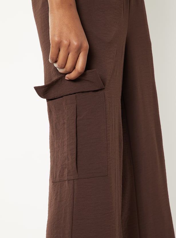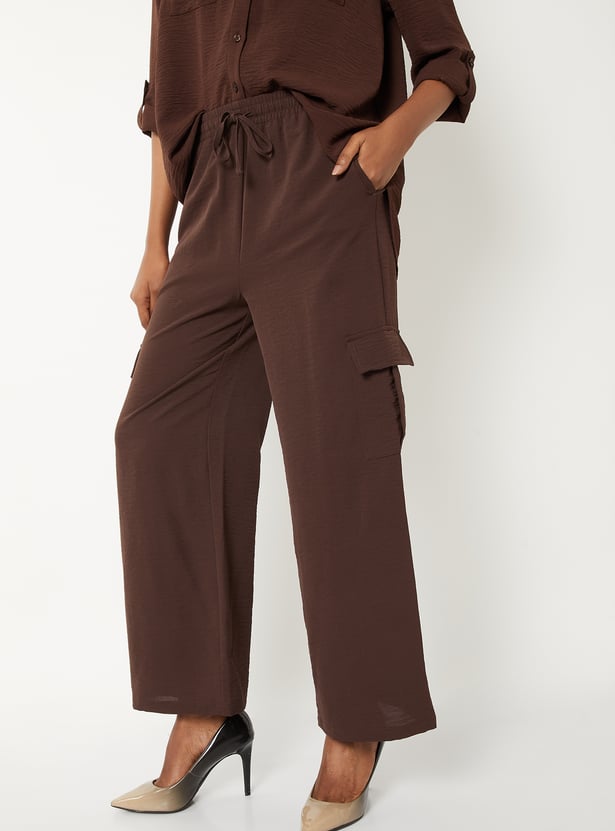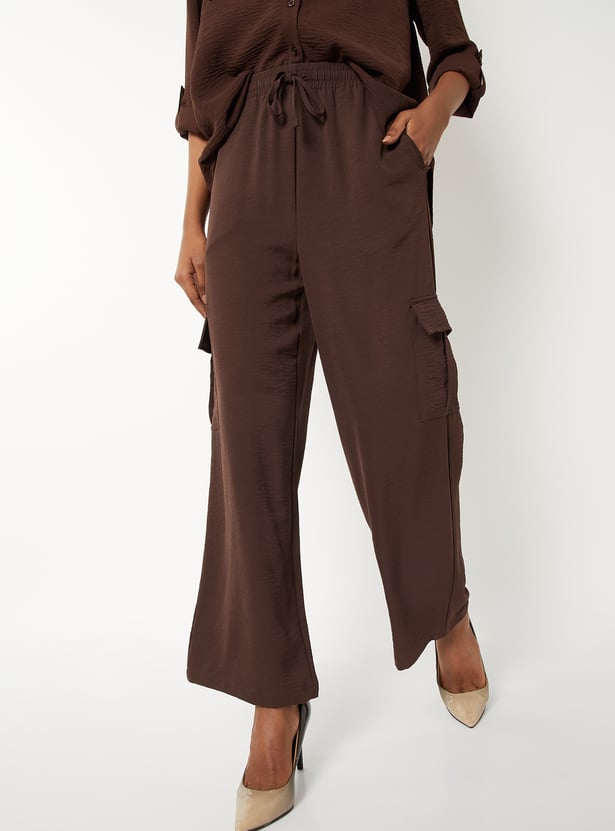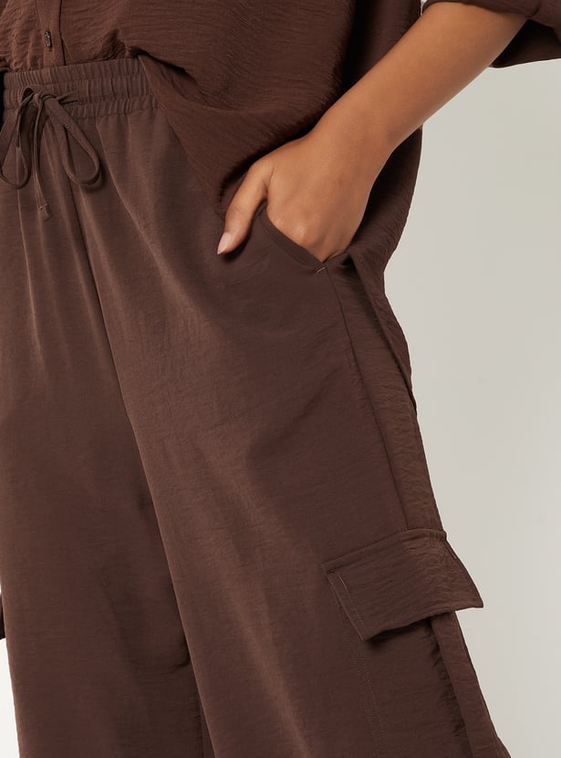Utility meets comfort in these textured wide leg cargos, designed with a relaxed silhouette, adjustable drawstring waist, and spacious pockets. Model Size :
