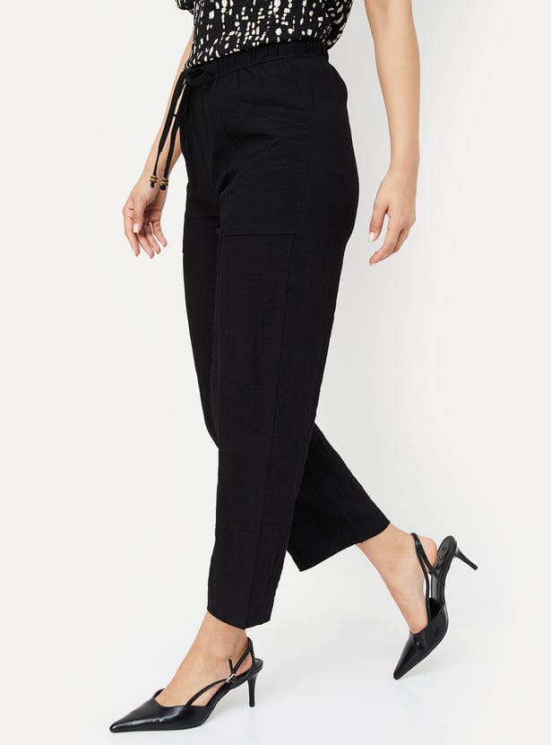 Women Textured Wide-Leg Trousers