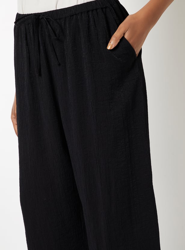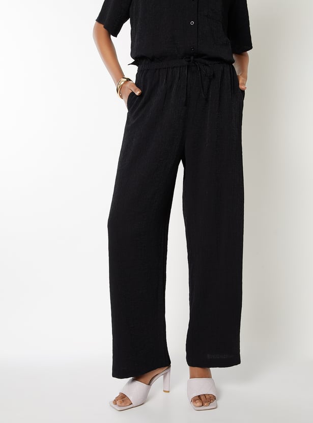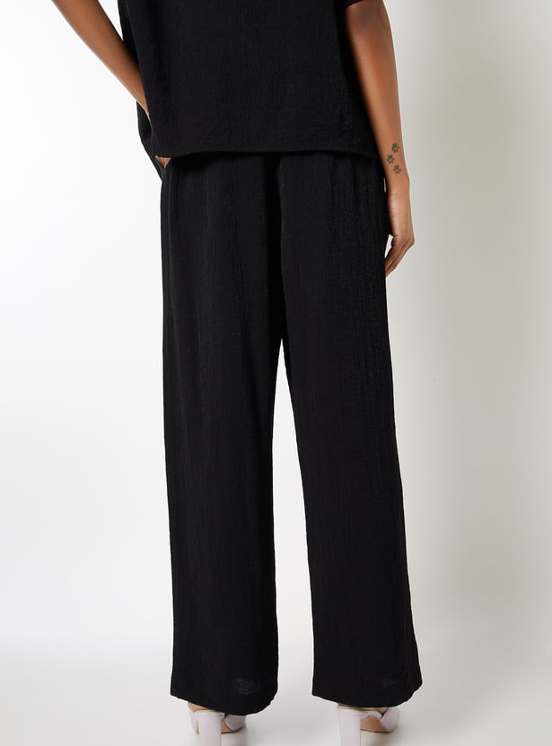 Women Textured Wide Leg Trousers