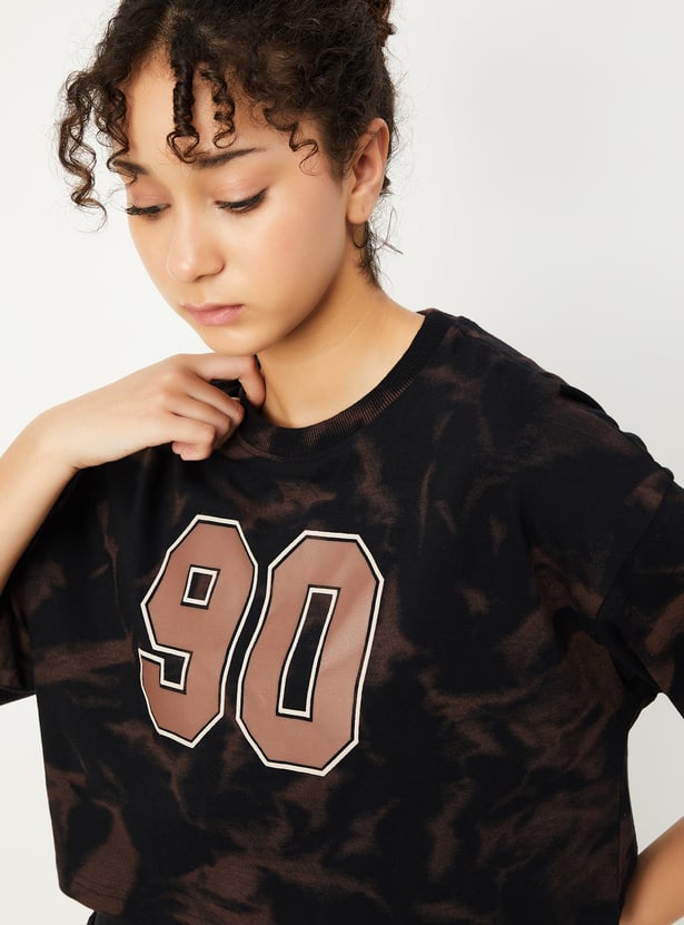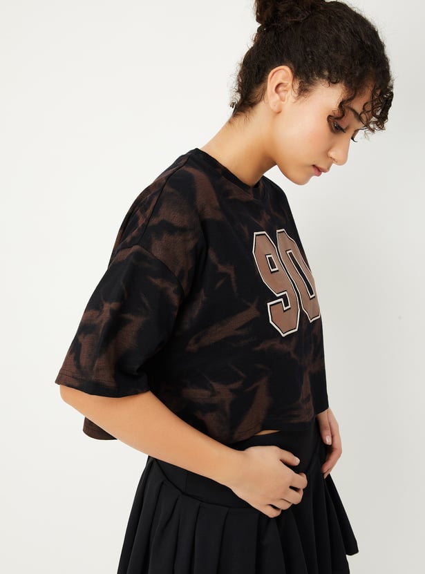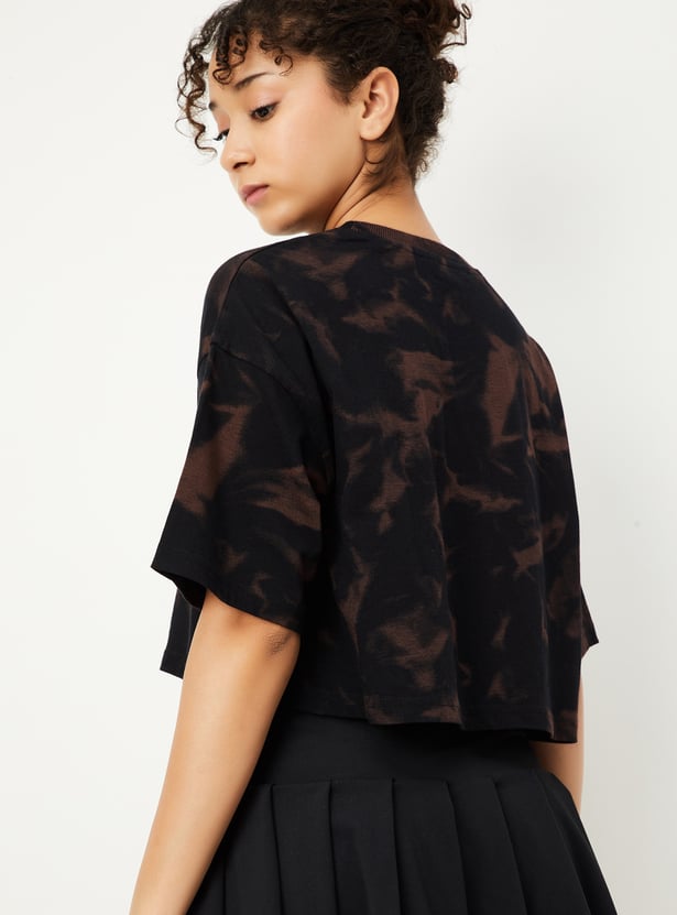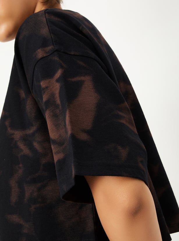 Sporty meets stylish with this T-shirt. The boxy silhouette and crop profile lend a roomy, effortless style. This tee has a round neck, drop shoulders, a tie & dye surface, and half sleeves. Model Size :