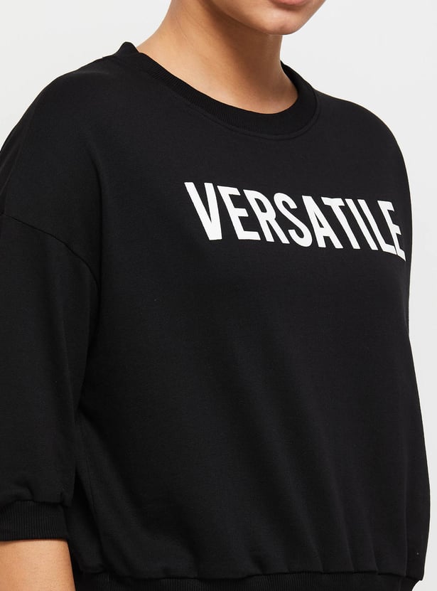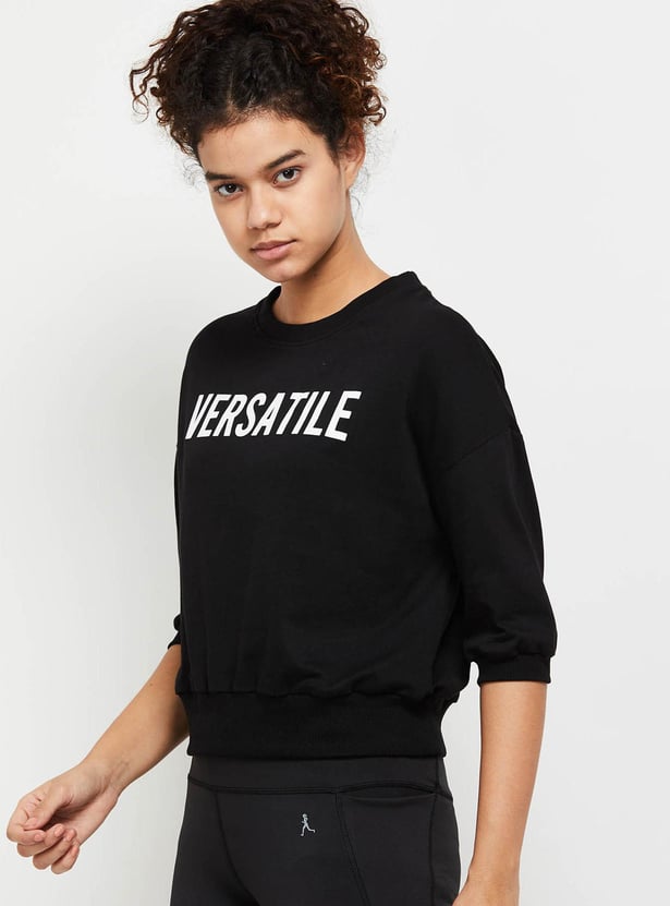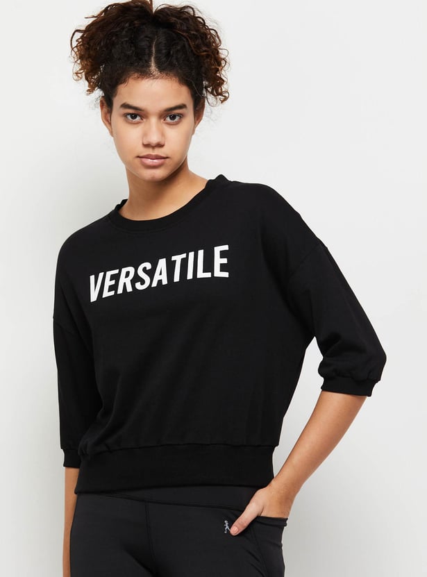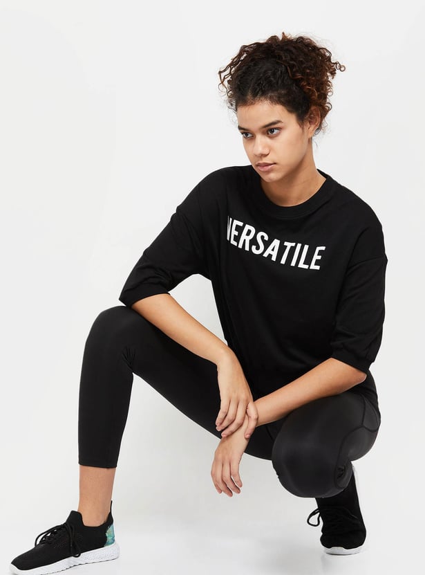 Women Typography Printed Regular Fit Sports T-shirt