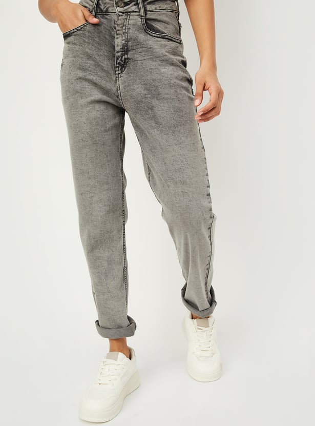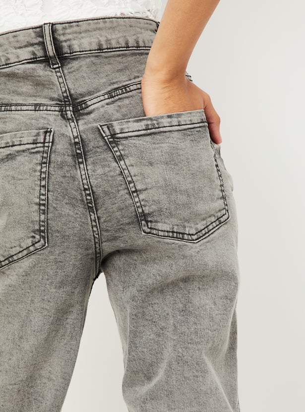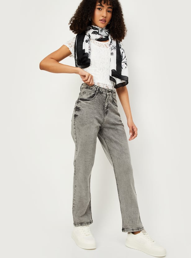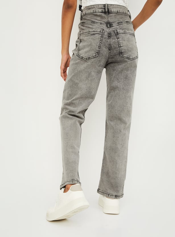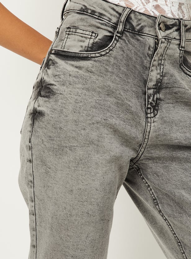 Women Washed Slim Straight Jeans