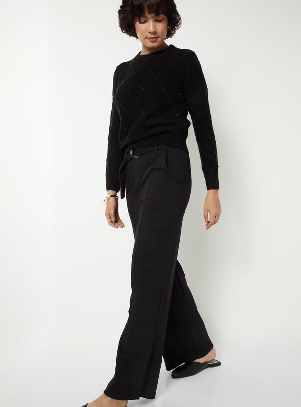 Women Wide Leg Belted Trousers