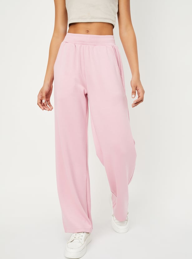 These solid wide leg track pants offer a perfect blend of comfort and contemporary style, featuring an elasticated waist for a secure fit. The wide leg silhouette adds a relaxed yet trendy vibe, ideal for casual days or lounging. Model Size :