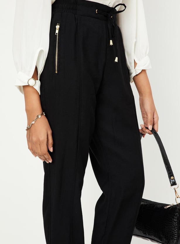 Intensify your style with these casual ankle length trousers which are designed to boost your style game featuring two pockets with an elasticated drawstring closure which allows you to have a perfect summer collection adding comfort with style.