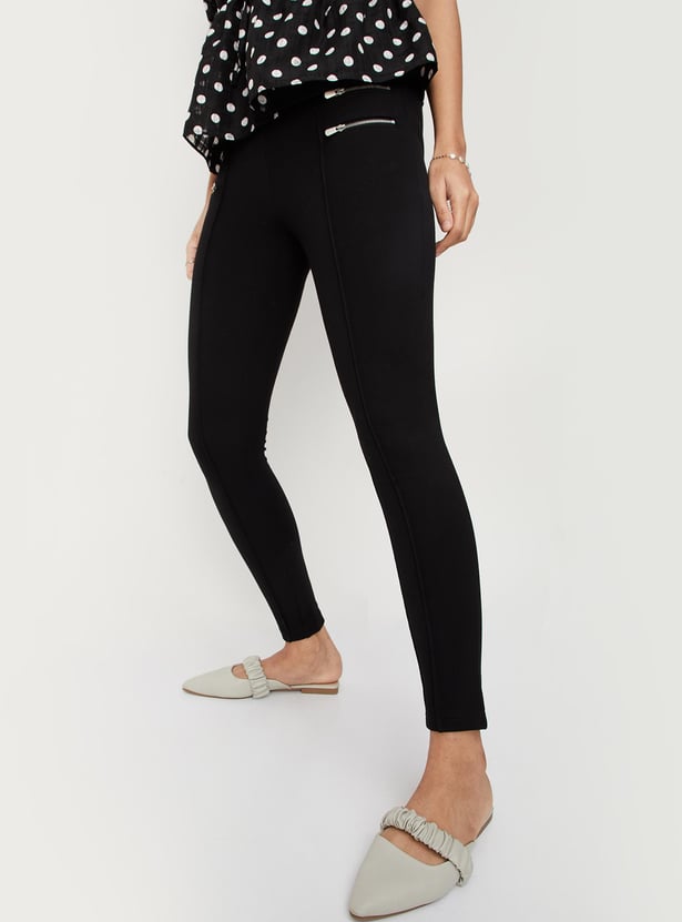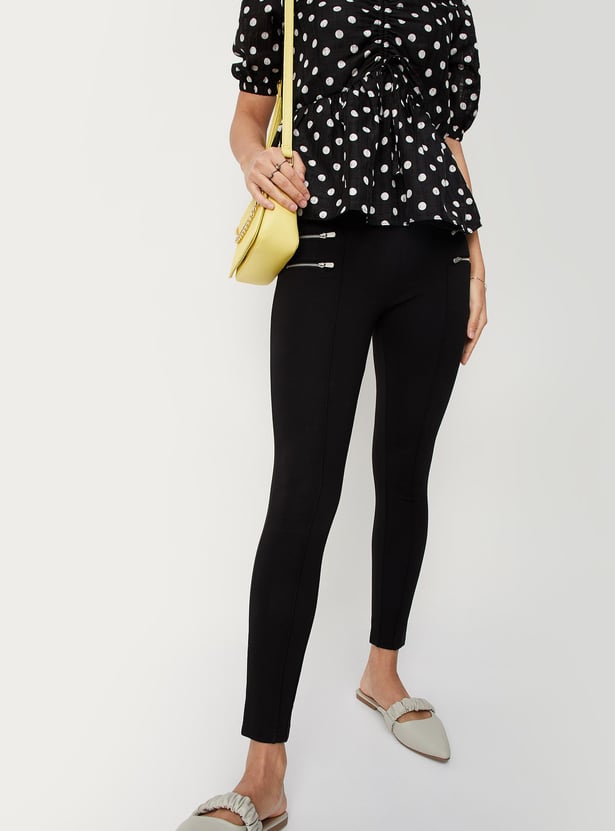 Women Zipper-Detailed Ponte Jeggings