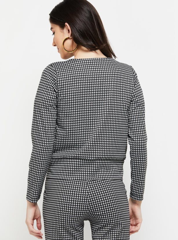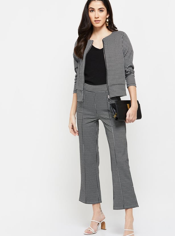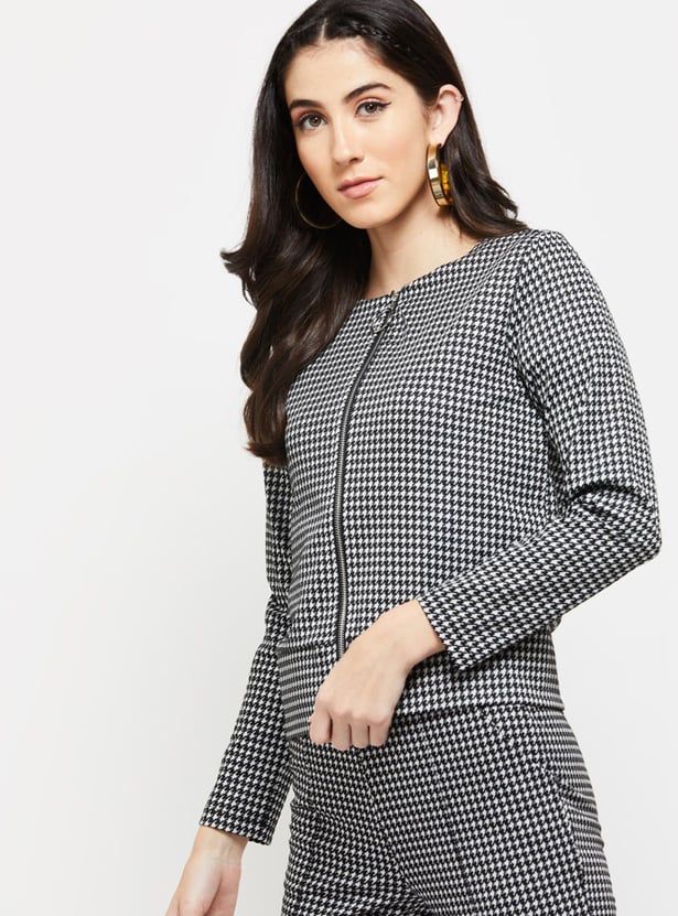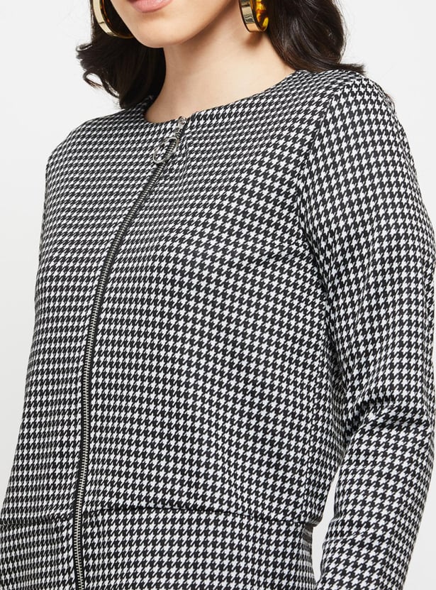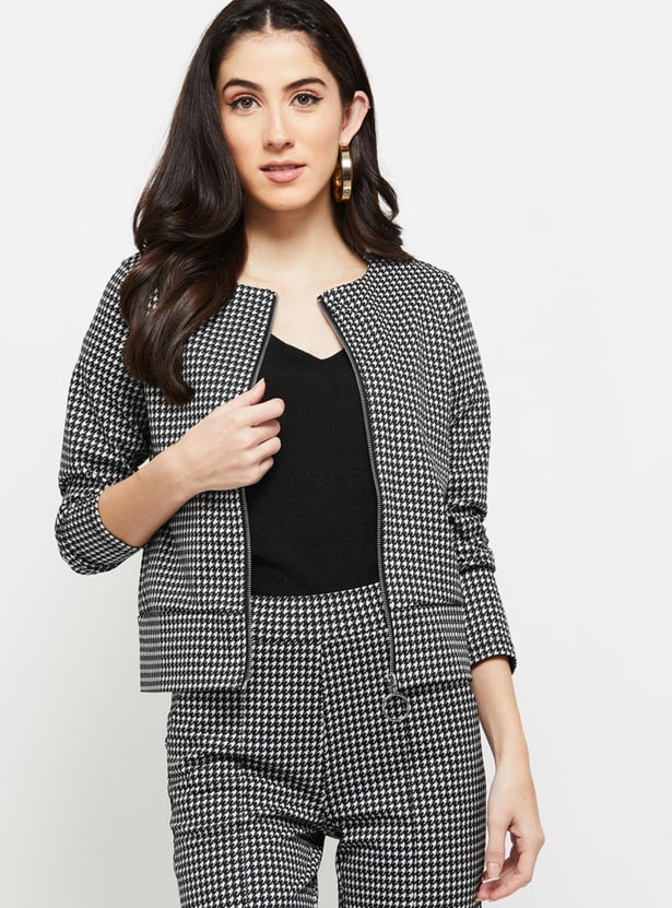Women Checkered Zip Closure Jacket