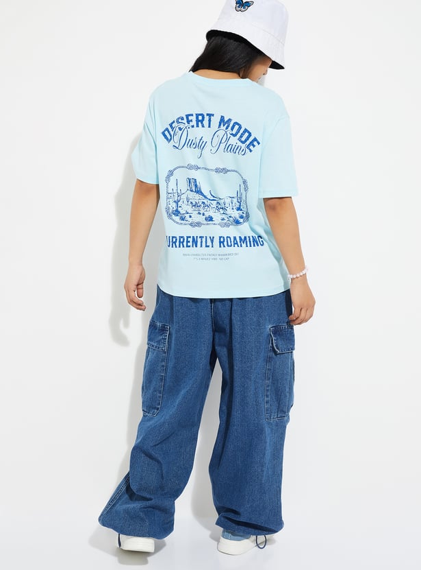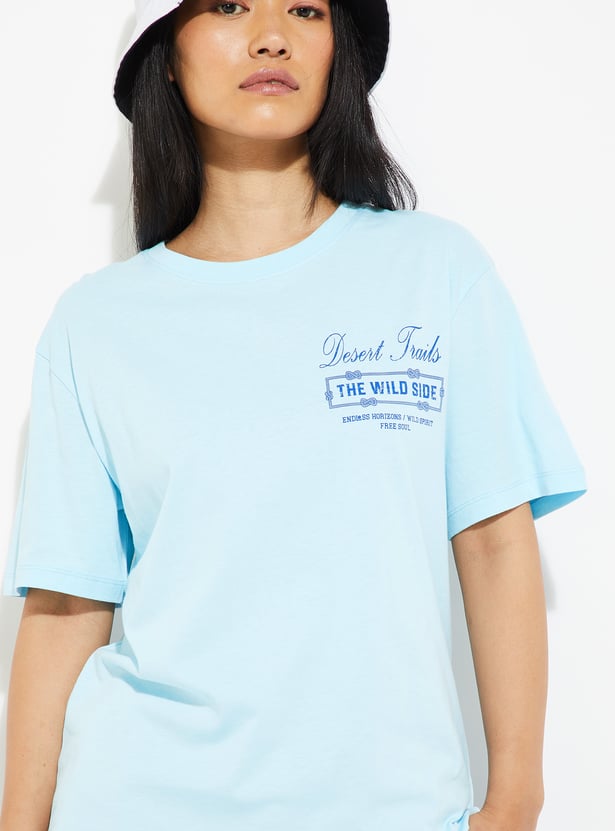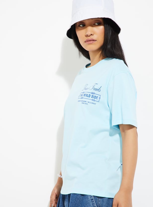 Upgrade your casual wardrobe with this typography print T-shirt designed for a laid-back style. Featuring a round neck, half sleeves, and a relaxed fit for comfortable everyday wear.
