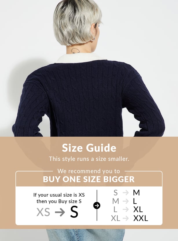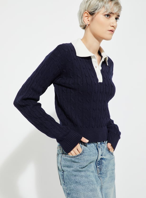 Upgrade your winter staples with this knit sweater featuring a stylish polo collar, full sleeves, and a neat half-button placket. Soft and cosy, it’s perfect for polished everyday comfort