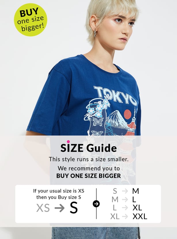 Unleash your inner chill with this T-shirt. Featuring a playful graphic print, this tee is all about relaxed, carefree vibes. With drop shoulders and half sleeves, it gives you that effortlessly cool, oversized fit.