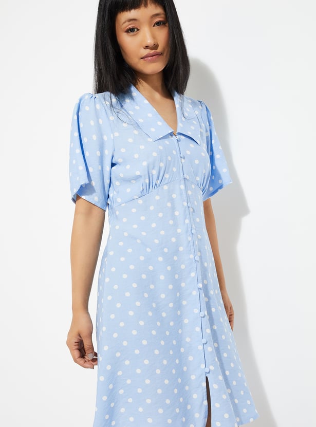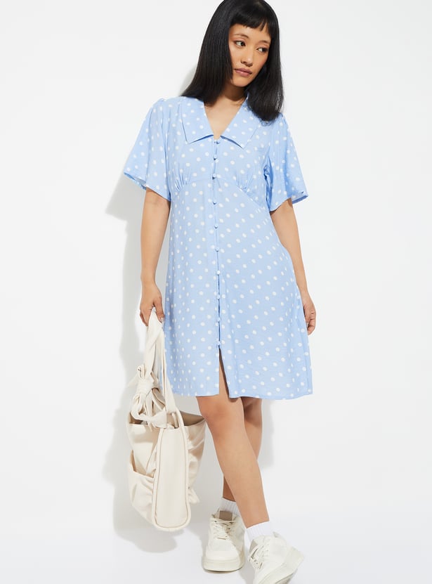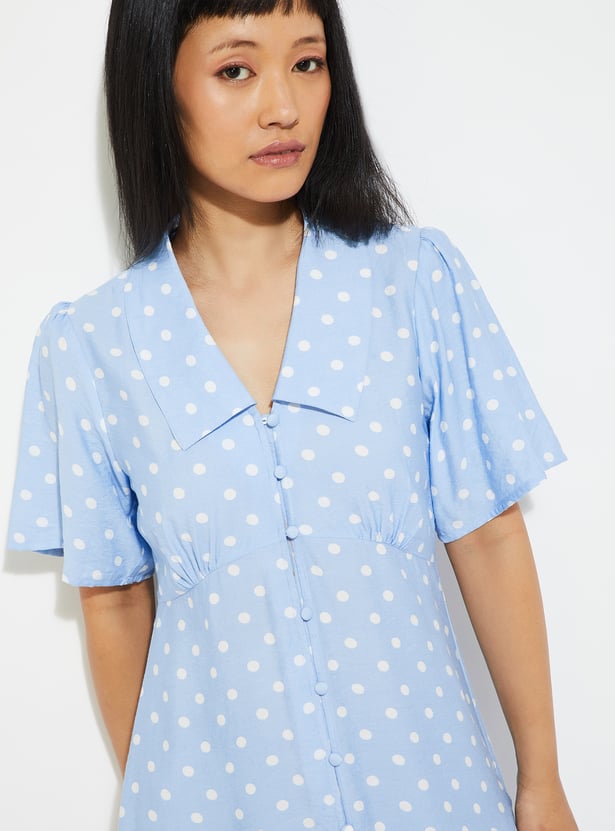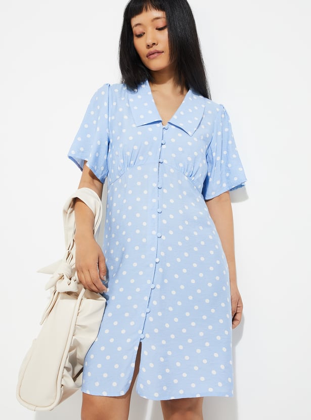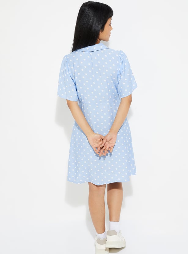 Add a playful touch to your everyday wardrobe with this printed A-line dress. Designed with a collared neckline and flared sleeves, it features a cinched empire waist that creates a flattering silhouette. Finished in a mini length, it’s perfect for casual outings or brunch dates.
